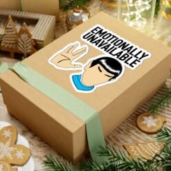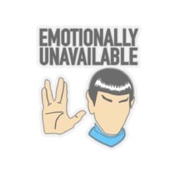 Add a dash of deadpan humor to your space with this Emotionally Unavailable indoor sticker, featuring Spock giving the classic Vulcan salute. Perfect for laptops, notebooks, or your emotional force field—this sticker keeps the vibes chill and the message clear.
