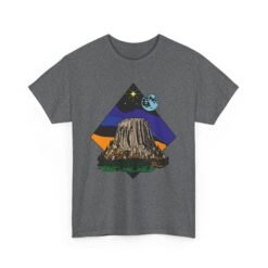Show off your love for iconic landscapes and cinematic legends with this Devil’s Tower unisex t-shirt. Featuring a bold, artistic image of the towering natural wonder rising from the plains, this shirt is perfect for explorers, sky-watchers, and fans of the strange and sublime.