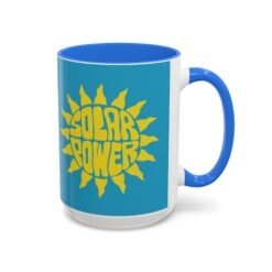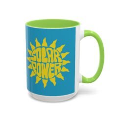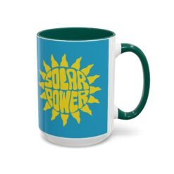 Solar Power Mug, Sun Graphic Accent Mug, Eco-Friendly Drinkware, Renewable Energy Coffee Cup, Color Accent Ceramic Mug, Feel-Good Gift Idea, Sunshine Vibes Mug, Positive Energy Kitchenware