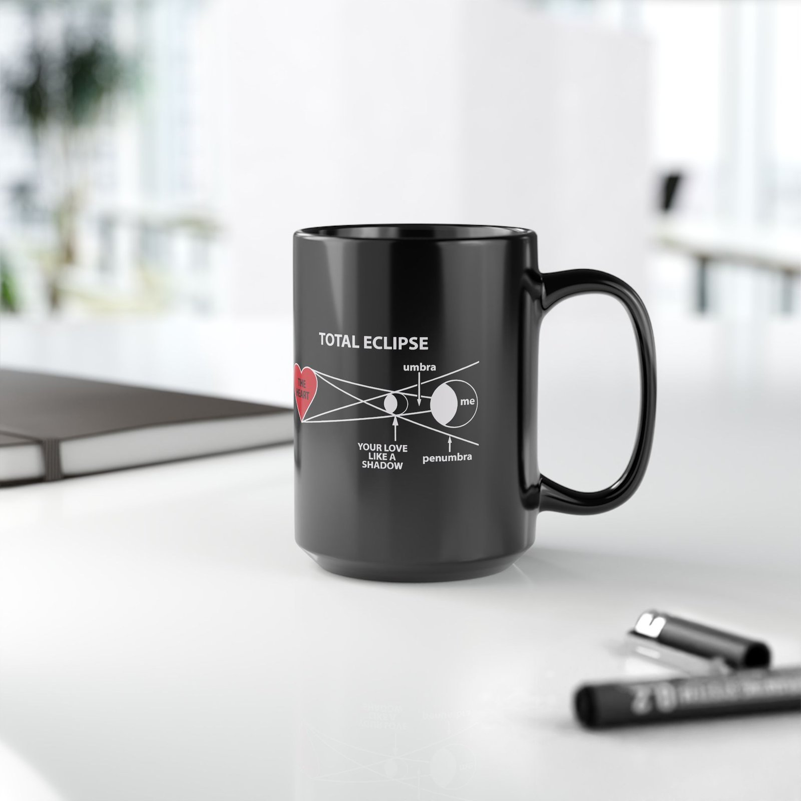 Featuring a beautifully clever scientific diagram of a heart being eclipsed, this 11 or 15 oz mug blends anatomy, astronomy, and a touch of poetic drama—perfect for romantics and science fans alike.