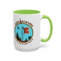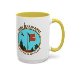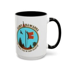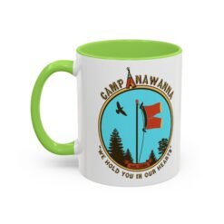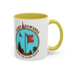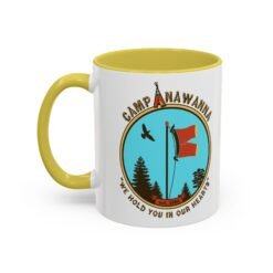 Start your morning with a splash of nostalgia and a side of summer camp mischief with this Camp Anawanna color accent mug! Featuring flying underpants on a flagpole and the unforgettable words “Camp Anawanna, We Hold You In Our Hearts,” this 11 or 15 oz ceramic mug is perfect for 90s kids, campfire song lovers, and anyone who still remembers the theme by heart.