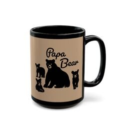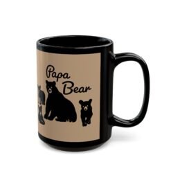 Start your morning with a warm reminder of your favorite titleโPapa Bear. This black ceramic mug features a bold silhouette of a bear with three little cubs in tow and the proud words โPapa Bear.โ Whether you’re wrangling breakfast or leading family adventures, this 11 or 15 oz mug has your back.