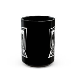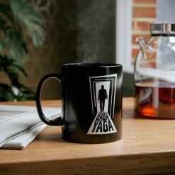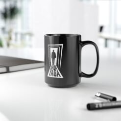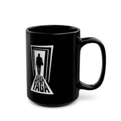 Start your day with silent intensity using this Baba Yaga black ceramic mug. Featuring the iconic silhouette of a lone man with a gun in a doorway and the chilling shadowed words “Baba Yaga,”.