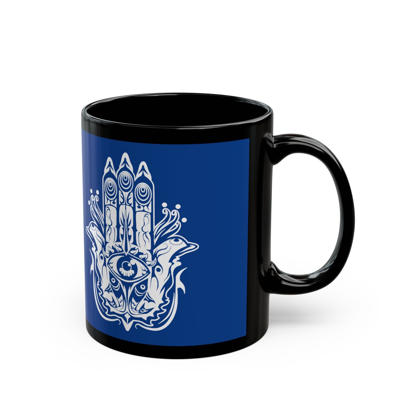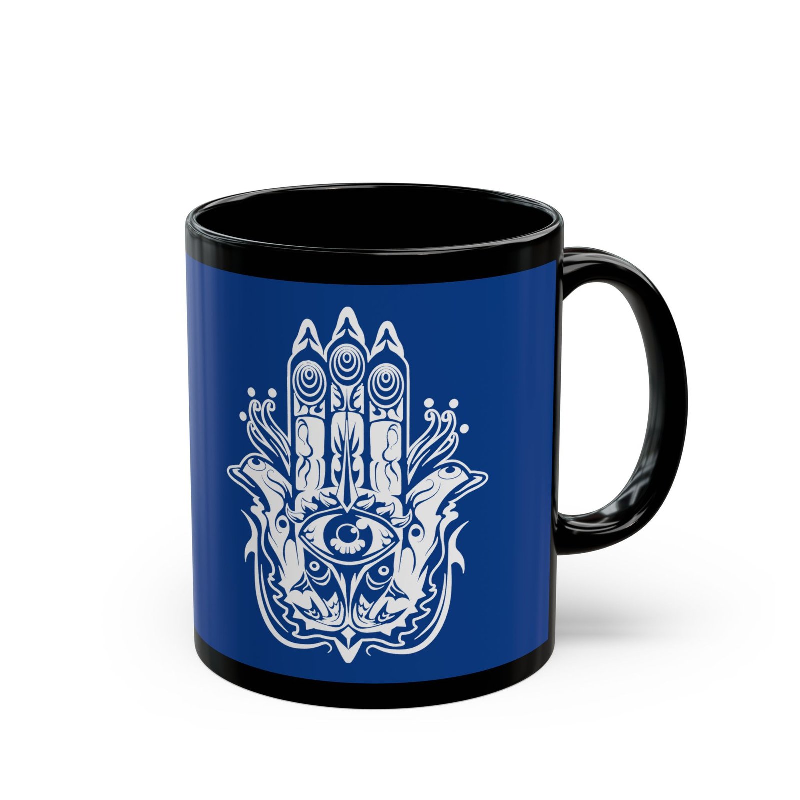 ☕🖐️✨ Hamsa Black Mug – Sip with Protection and Peace