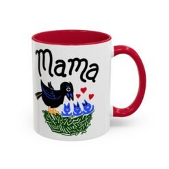 Start your mornings with a warm reminder of unconditional love! This charming 11 or 15 oz color accent mug features a sweet illustration of a mama bird lovingly watching over her baby chicks, with the word “Mama” beneath the scene. With a colorful handle and interior, it’s the perfect blend of cozy and cute—just like mom.