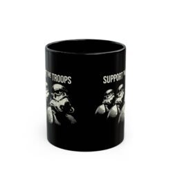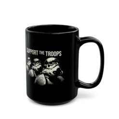 Support the Troops Mug, Stormtrooper Coffee Mug, Star Wars Black Mug, Funny Sci-Fi Mug, 11 oz Geek Mug, 15 oz Nerdy Mug, Galactic Empire Cup, Star Wars Gift Idea, Sci-Fi Humor Mug, Pop Culture Drinkware