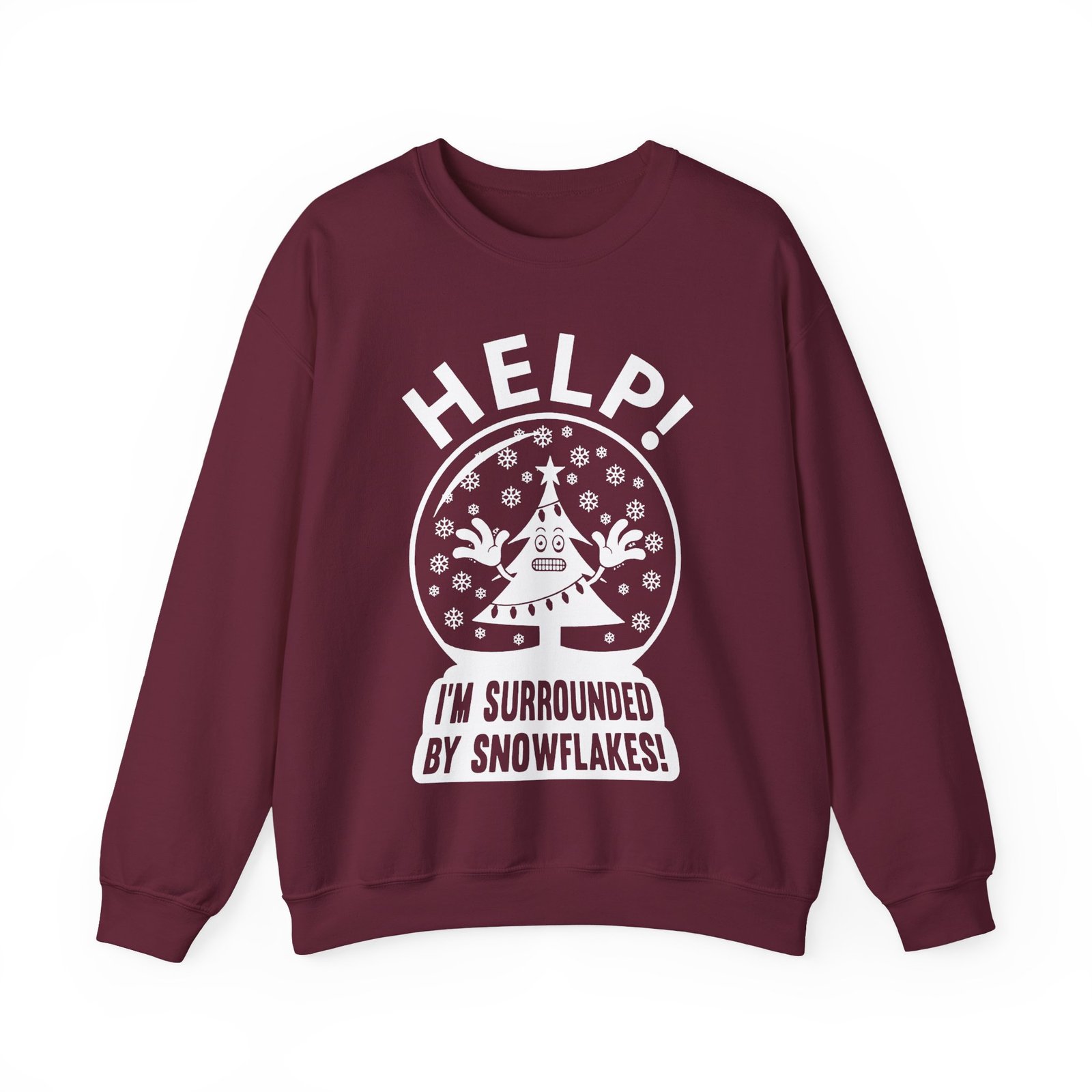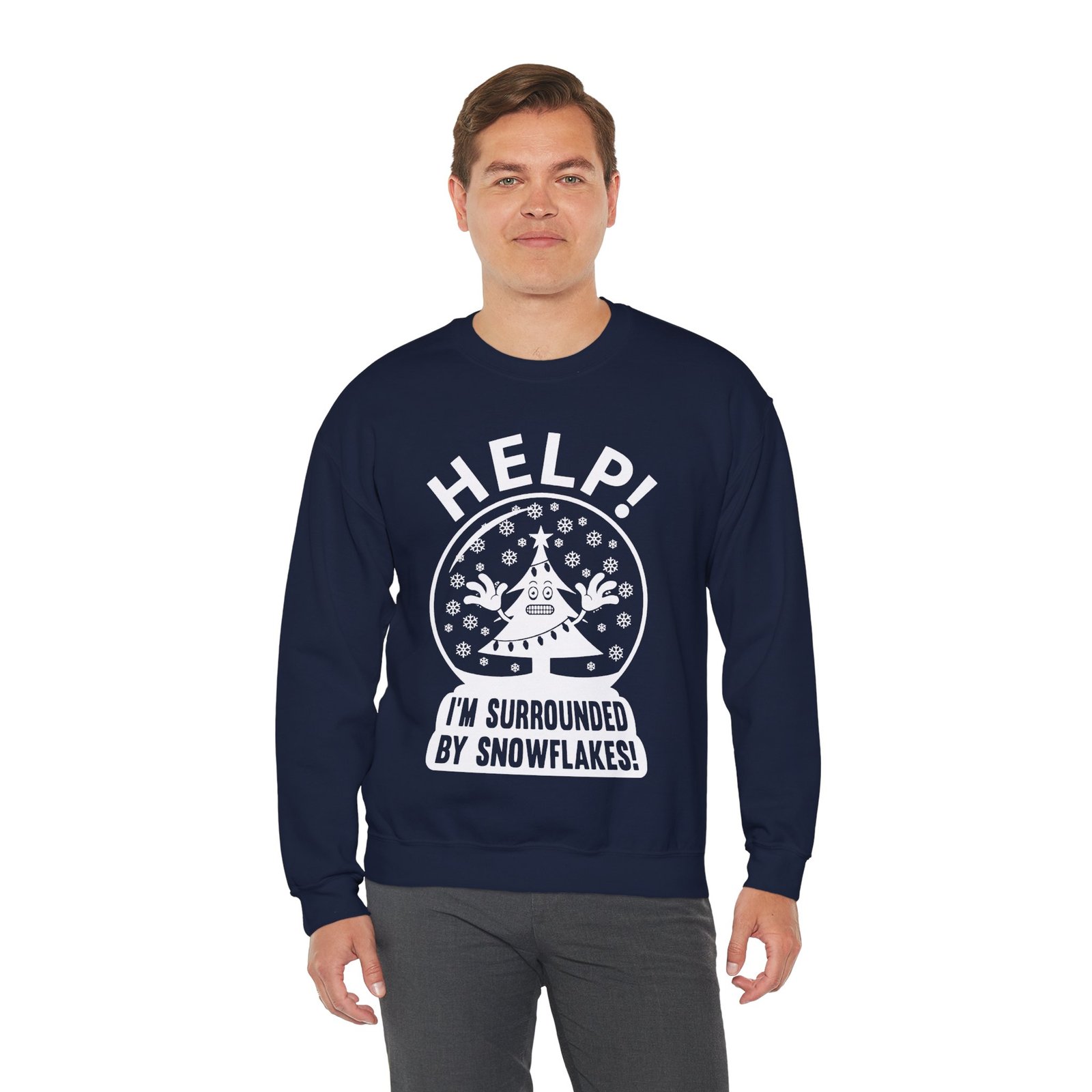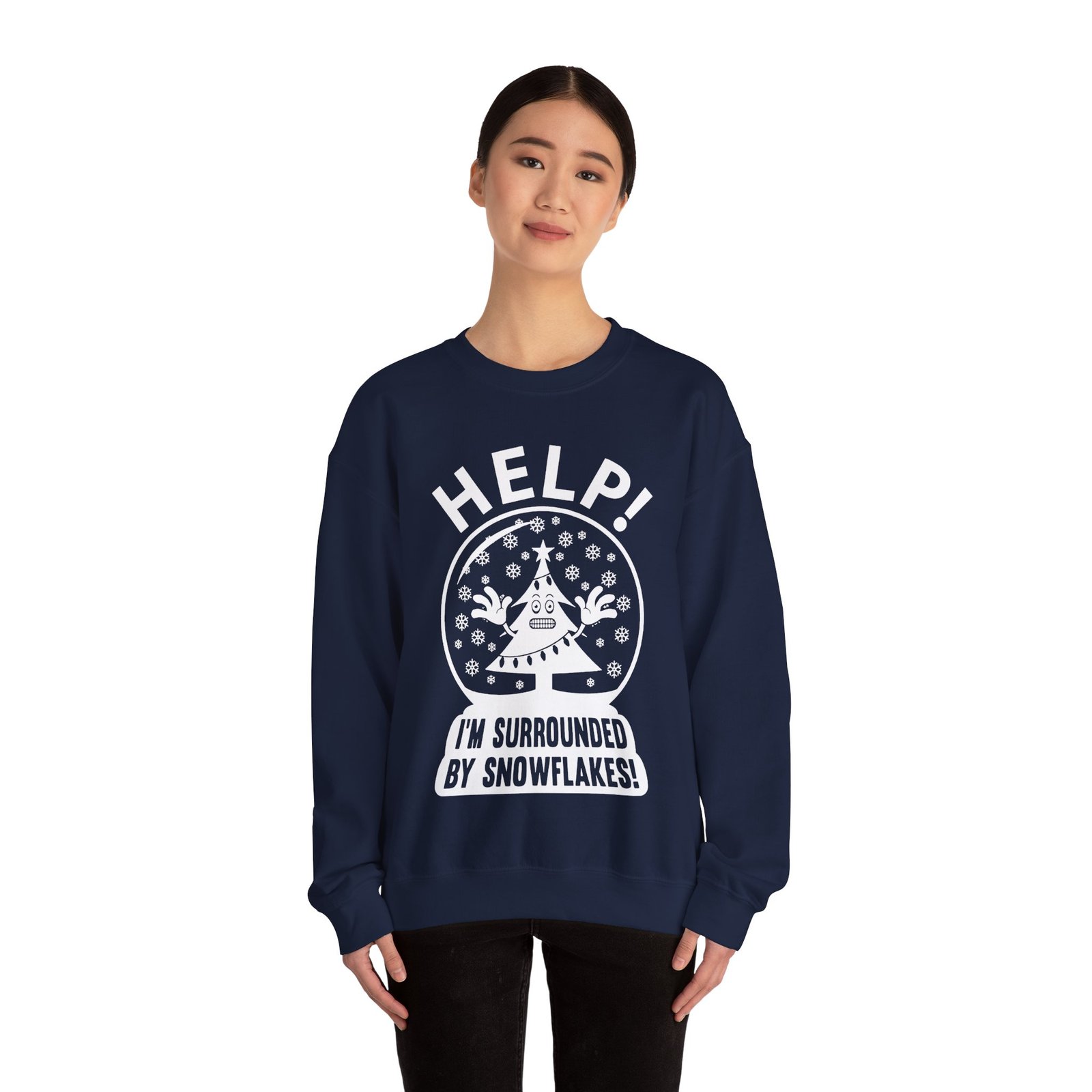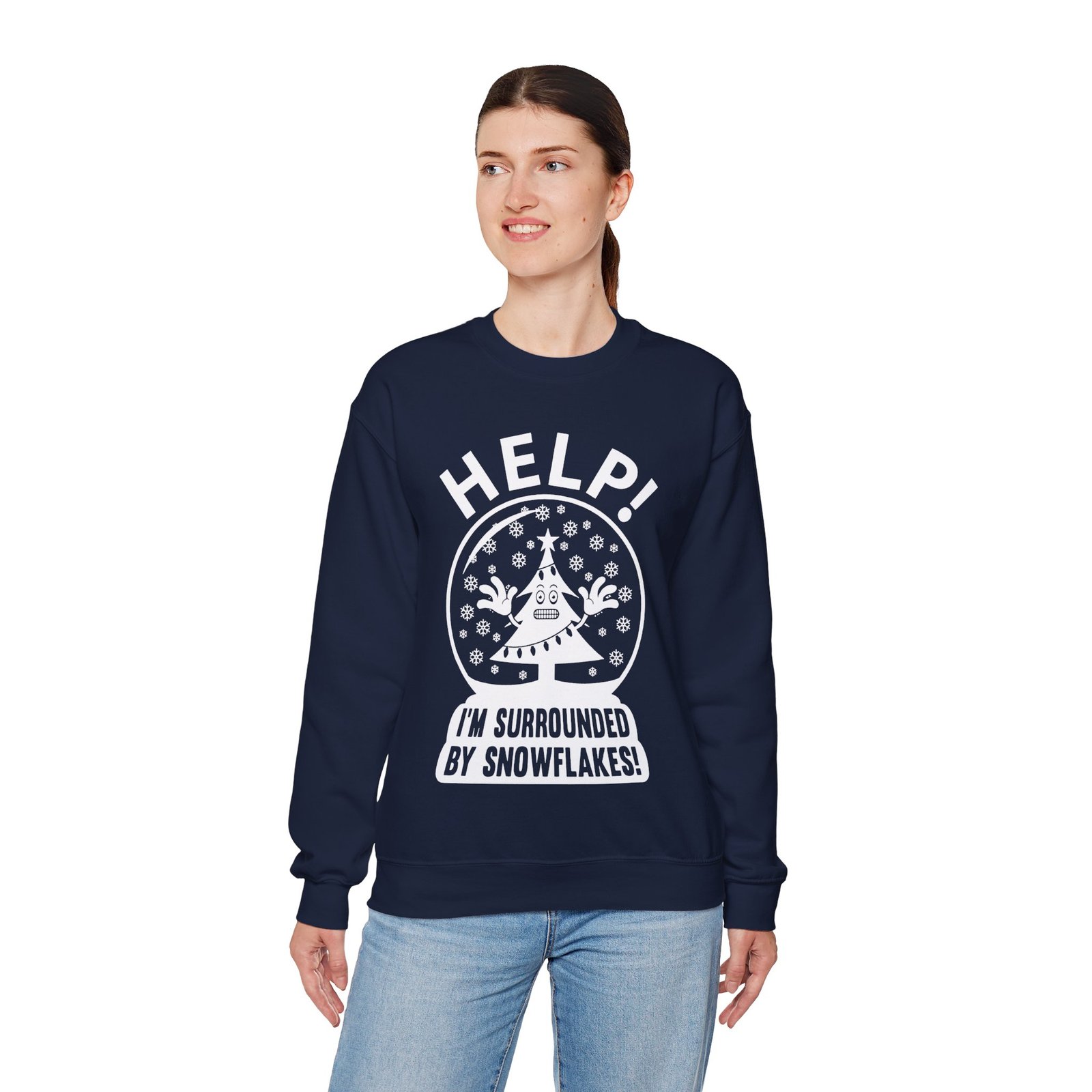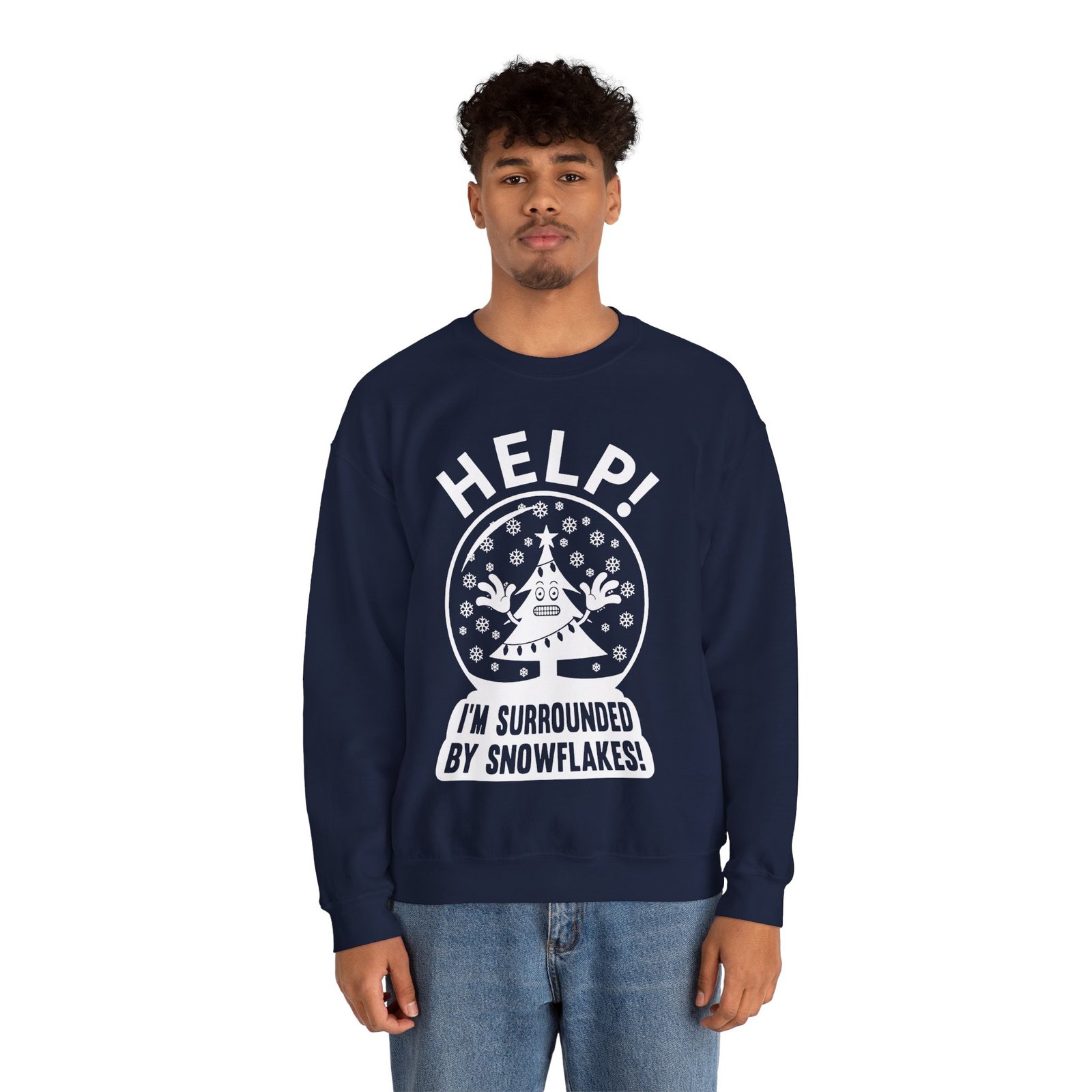 ❄️🎄😒 Help! I’m Surrounded By Snowflakes Unisex Sweatshirt – Cozy with a Side of Sarcasm