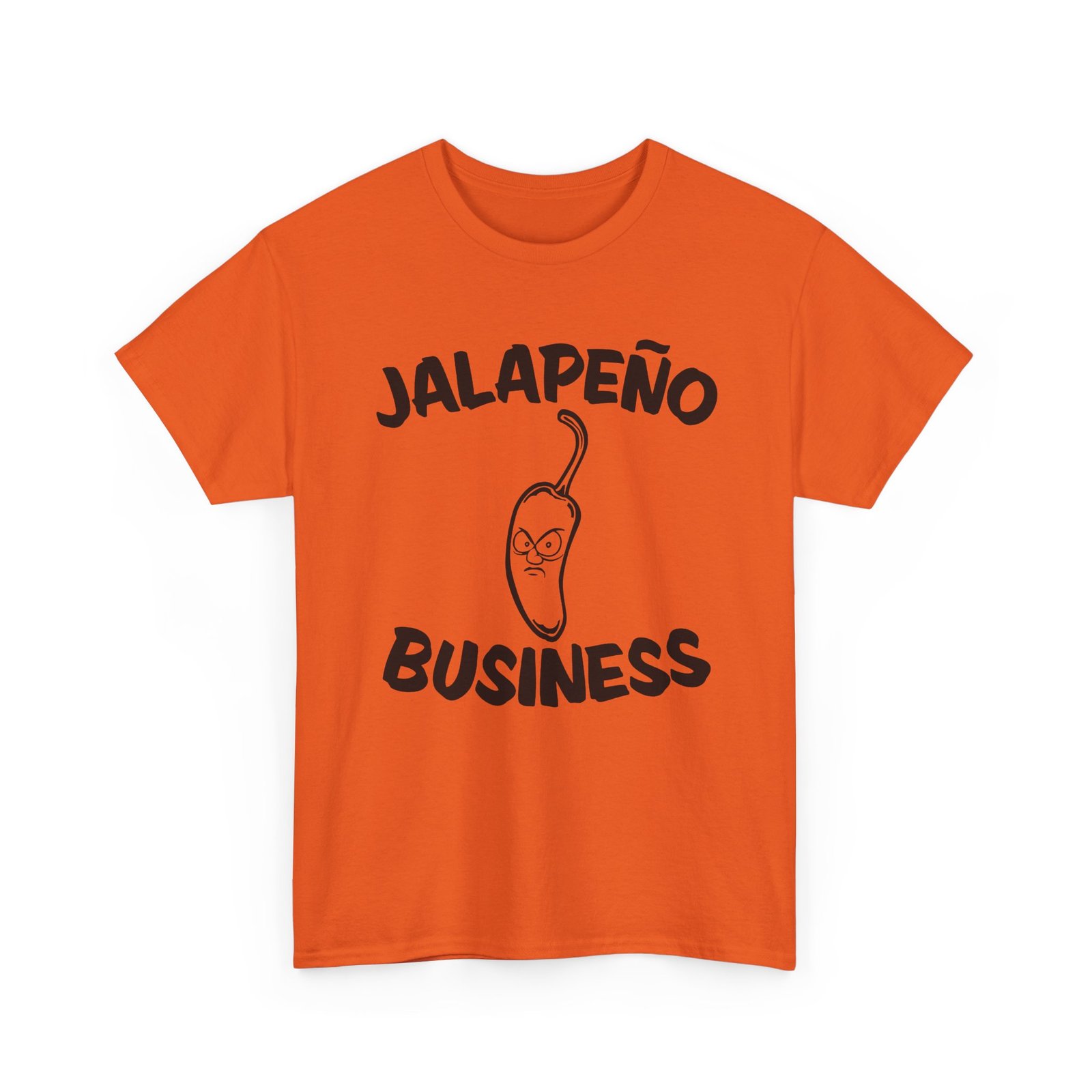 Bring the heat (and the humor) with this Jalapeño Business unisex t-shirt! Featuring a feisty cartoon jalapeño with an angry face, this tee is perfect for anyone who likes their style bold, their jokes punny, and their peppers spicy.