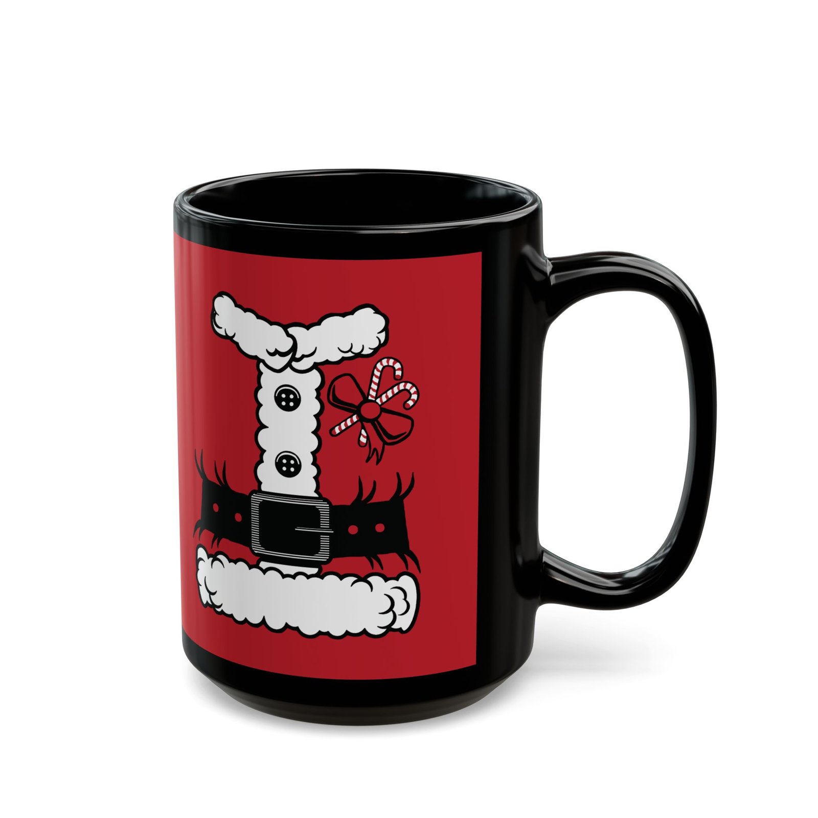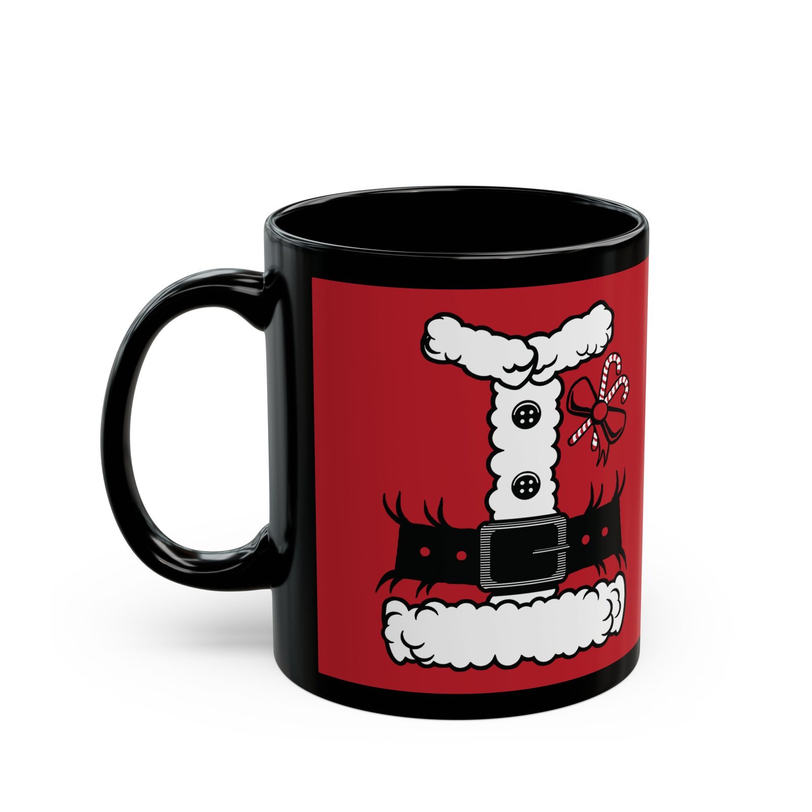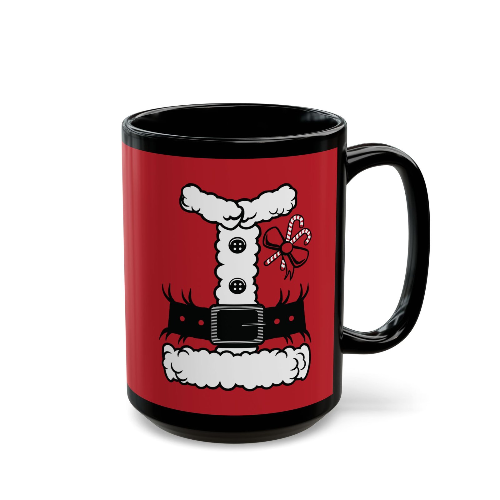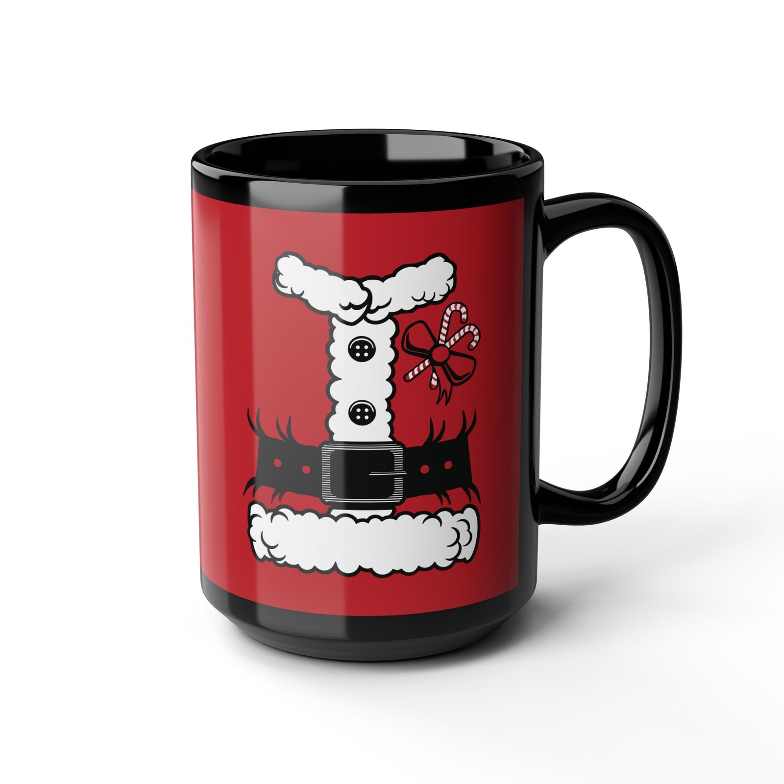 Bring a little North Pole magic to your morning routine with this Santa’s Suit Black Mug! Featuring a printed design that mimics jolly ol’ St. Nick’s iconic red tunic.