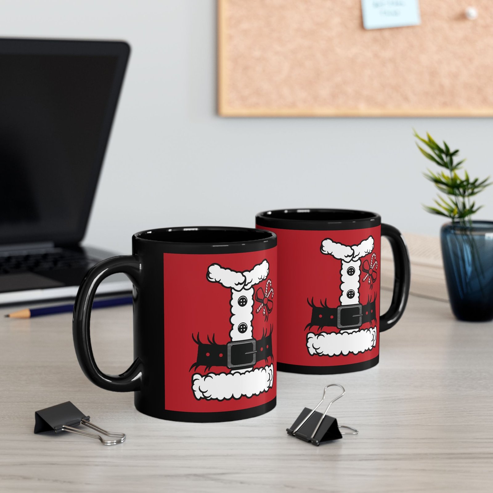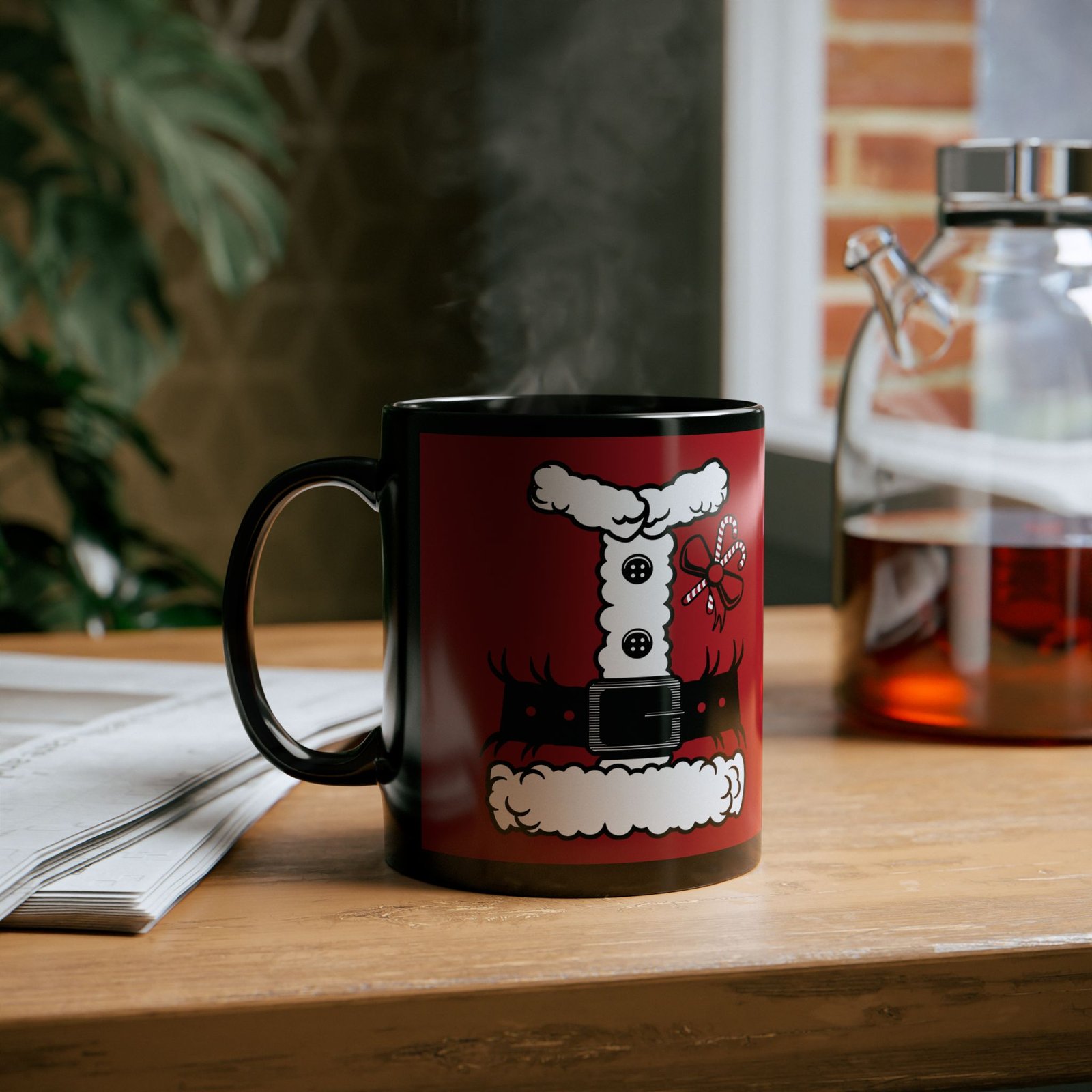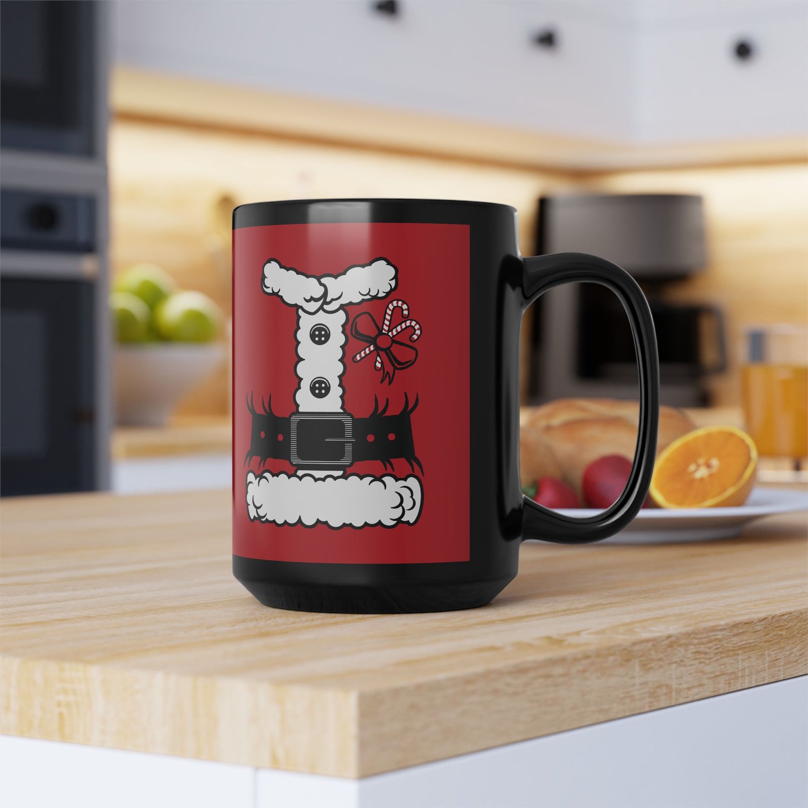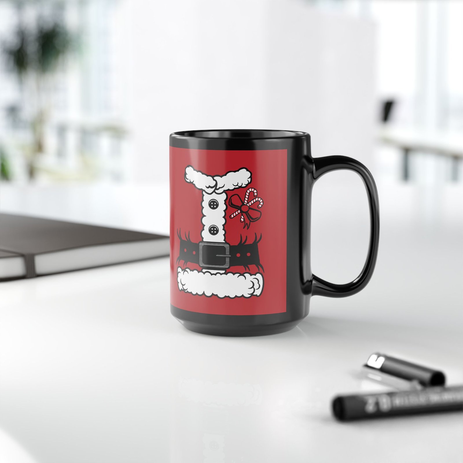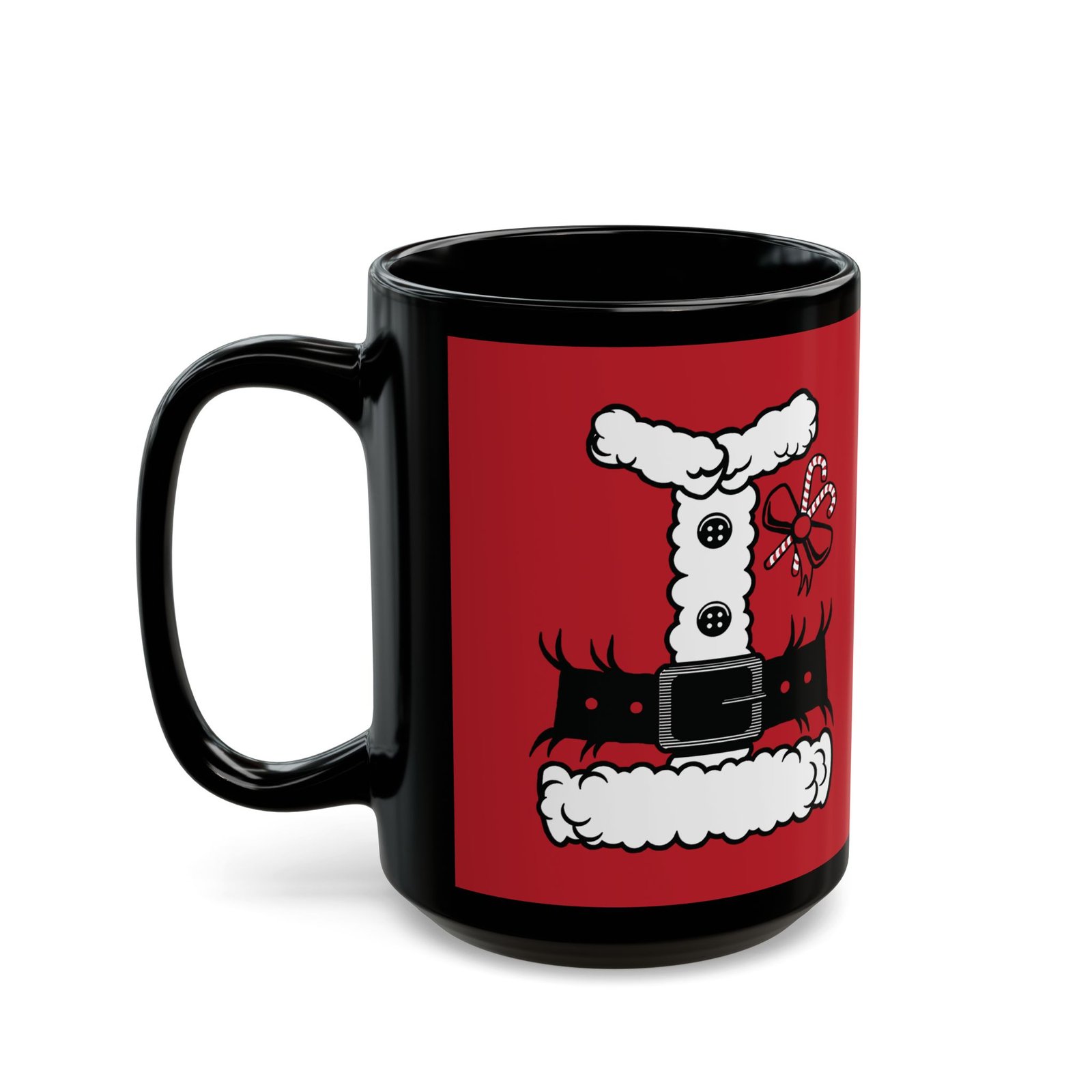 Bring a little North Pole magic to your morning routine with this Santa’s Suit Black Mug! Featuring a printed design that mimics jolly ol’ St. Nick’s iconic red tunic.