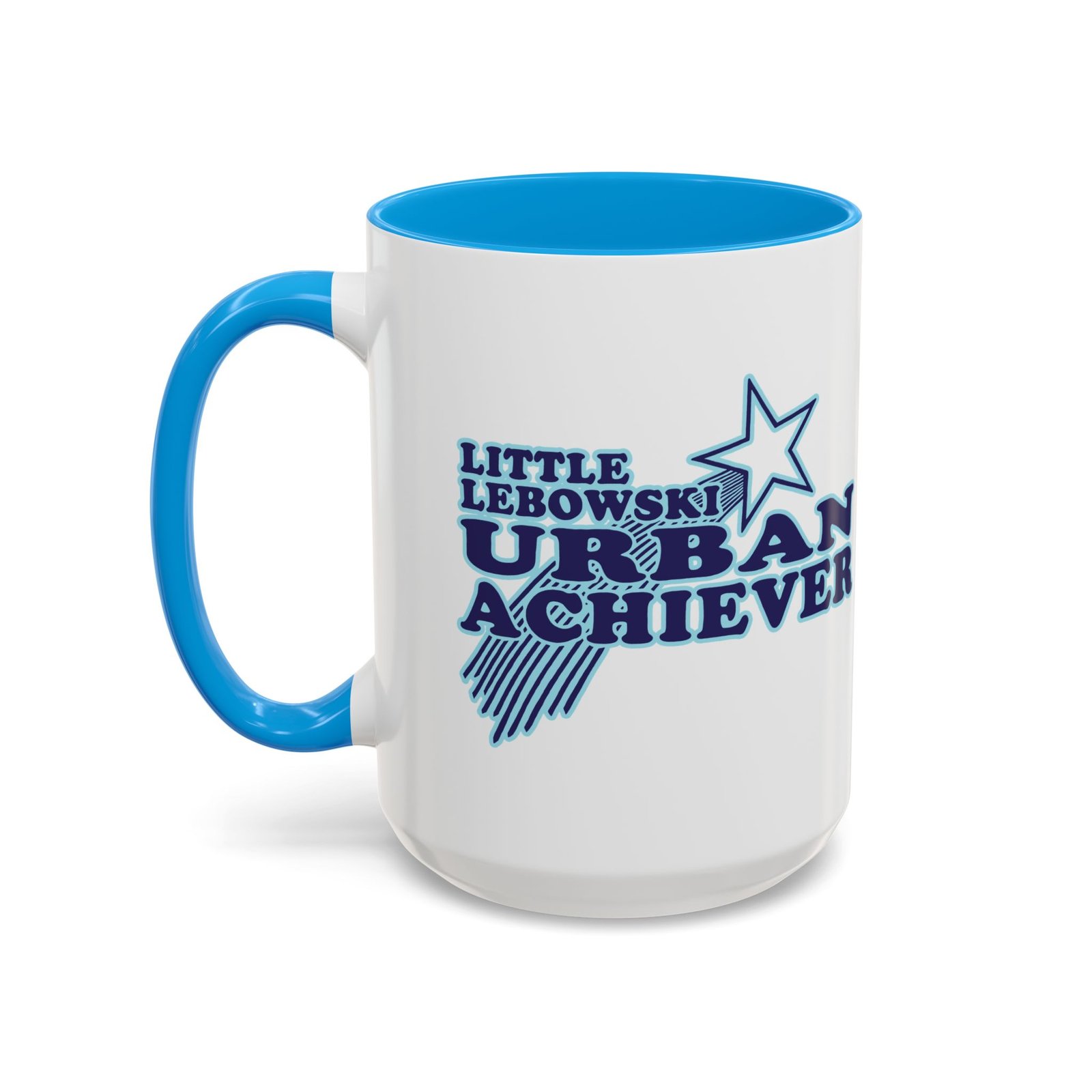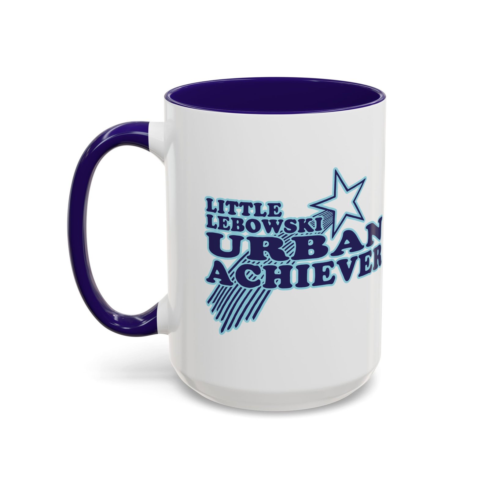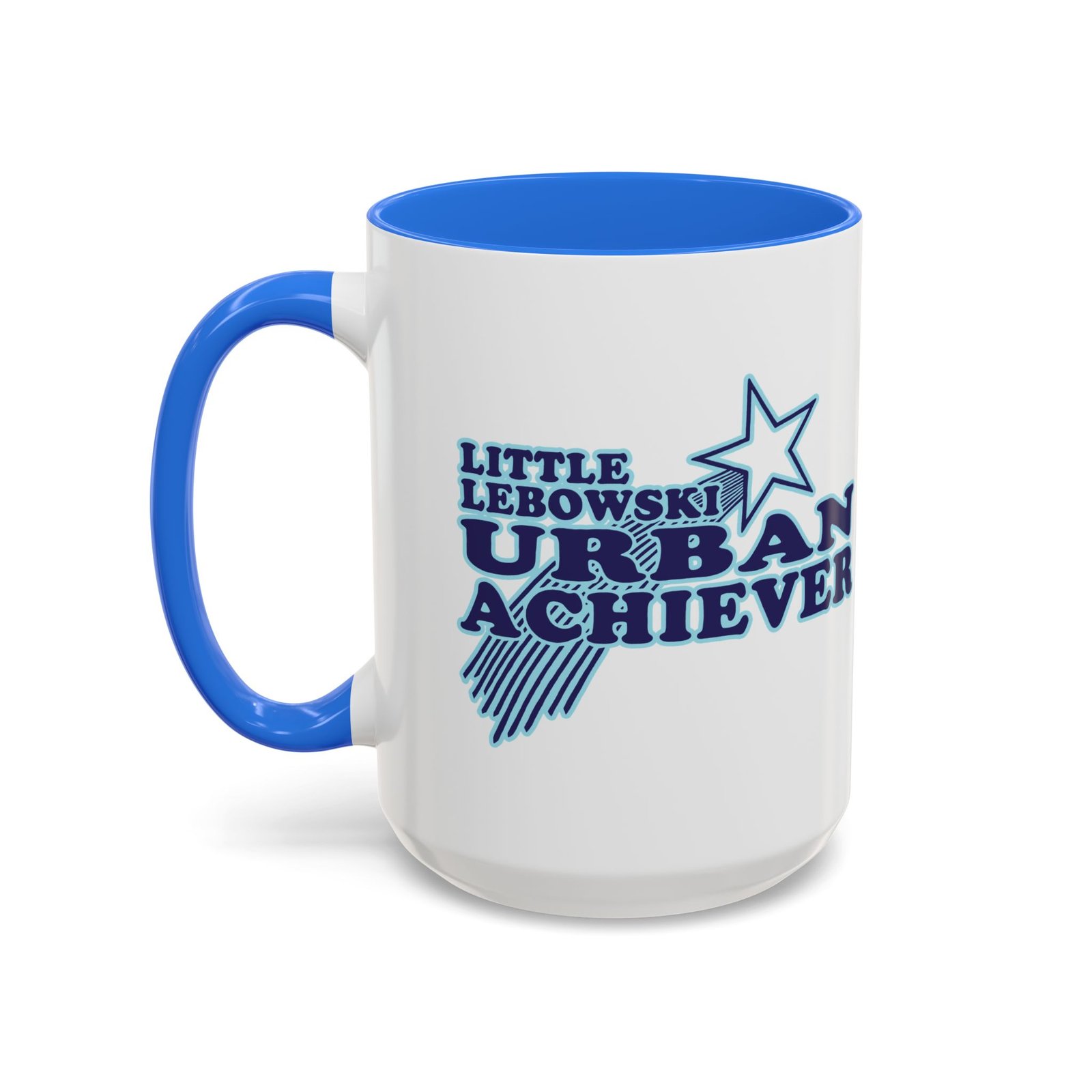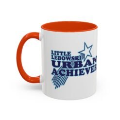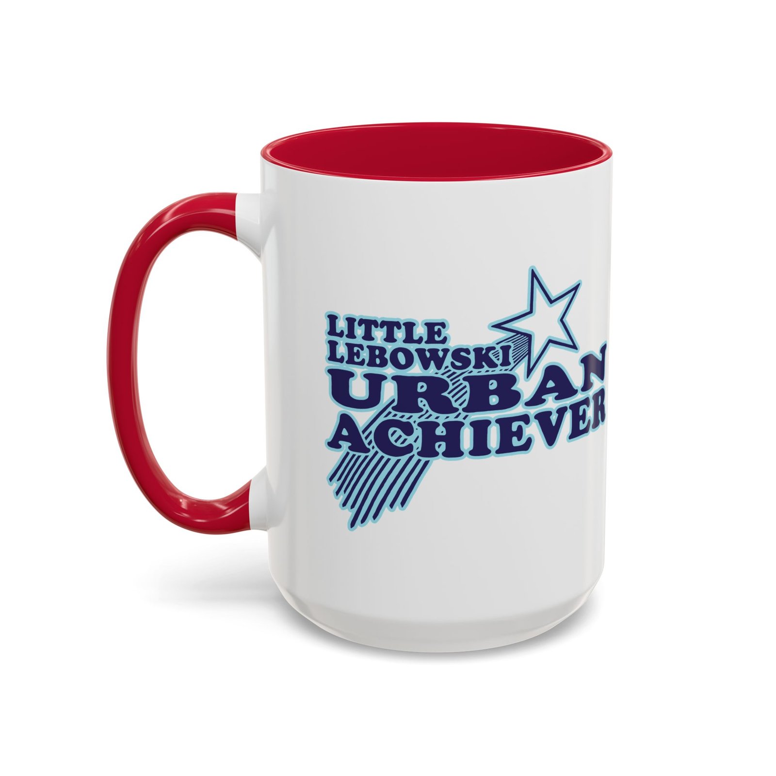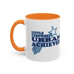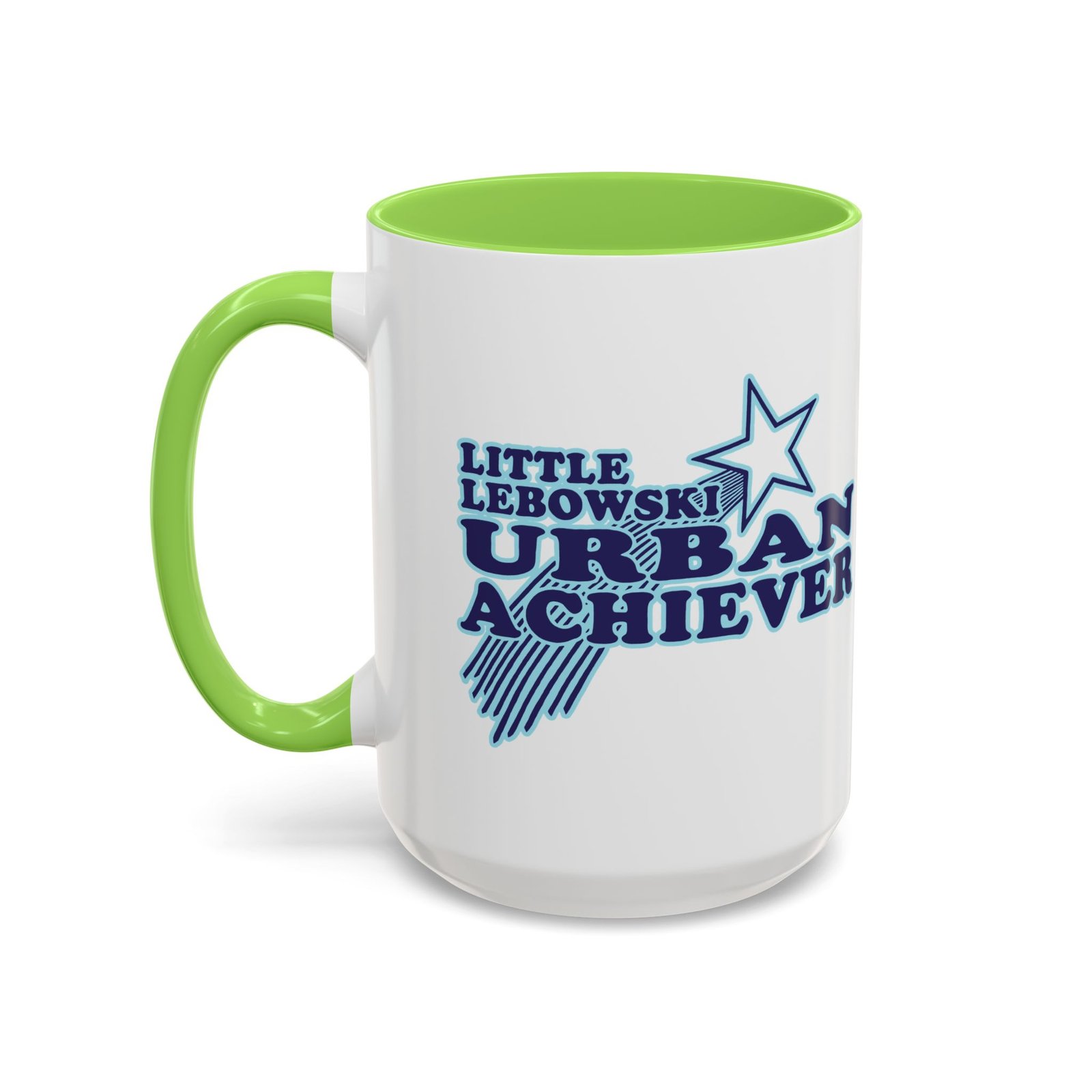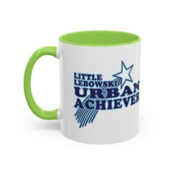 Celebrate modest goals and big dreams with the Little Lebowski Urban Achievers Accent Color Mug, inspired by the unforgettable cult classic The Big Lebowski. Featuring the official-style logo of this hilariously sincere youth outreach program, this mug is perfect for fans who know that sometimes, achievement is just getting through the day with a hot drink.