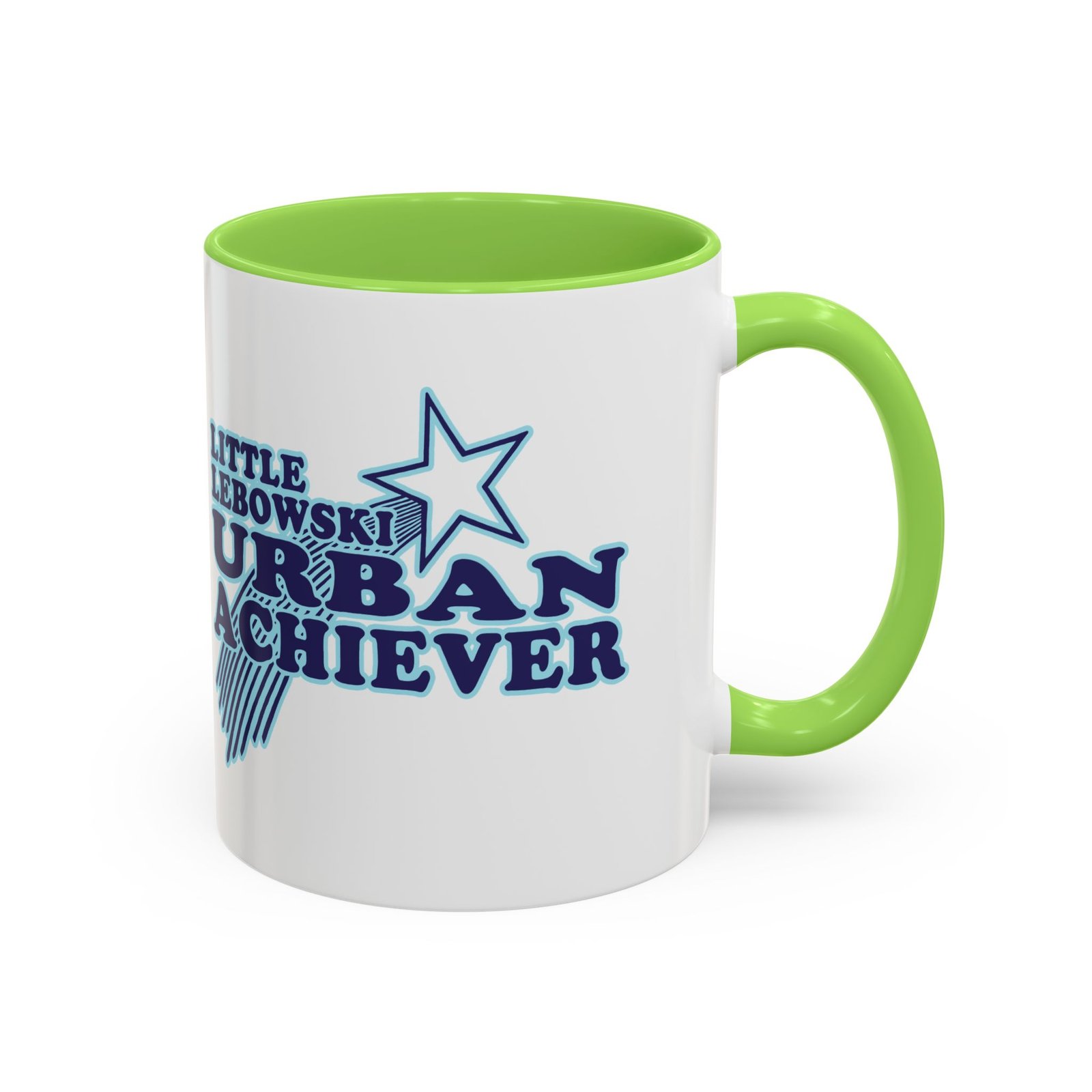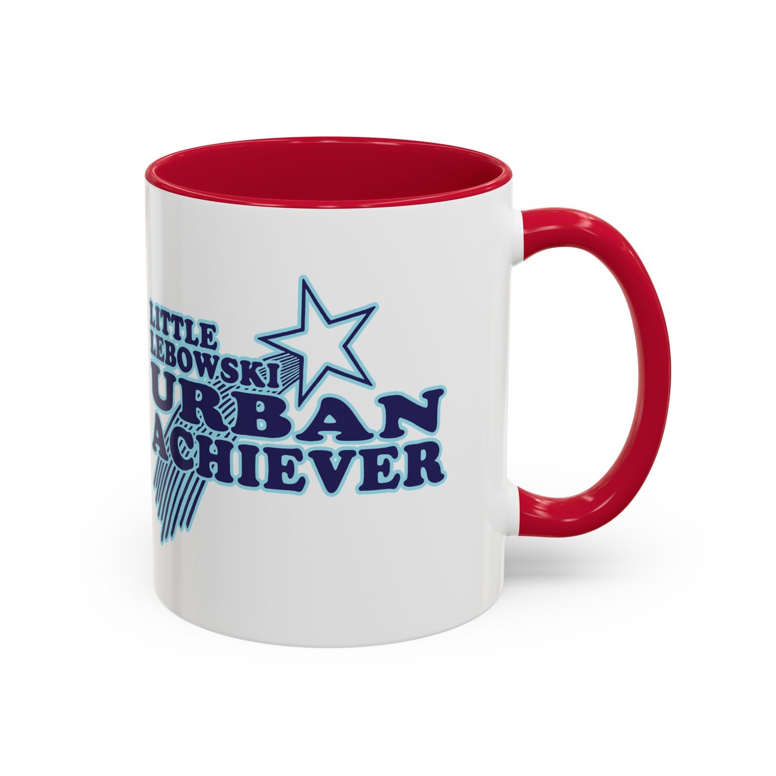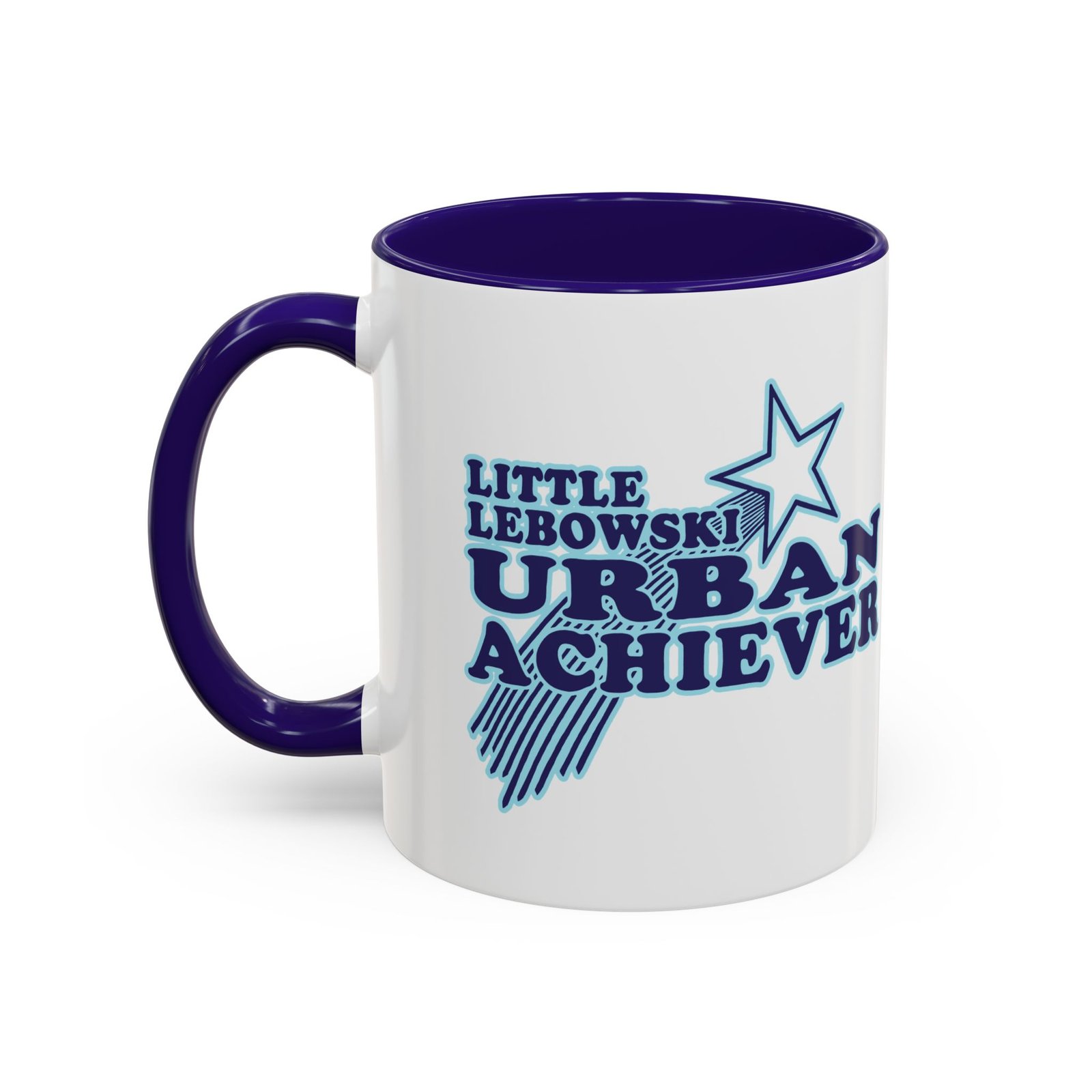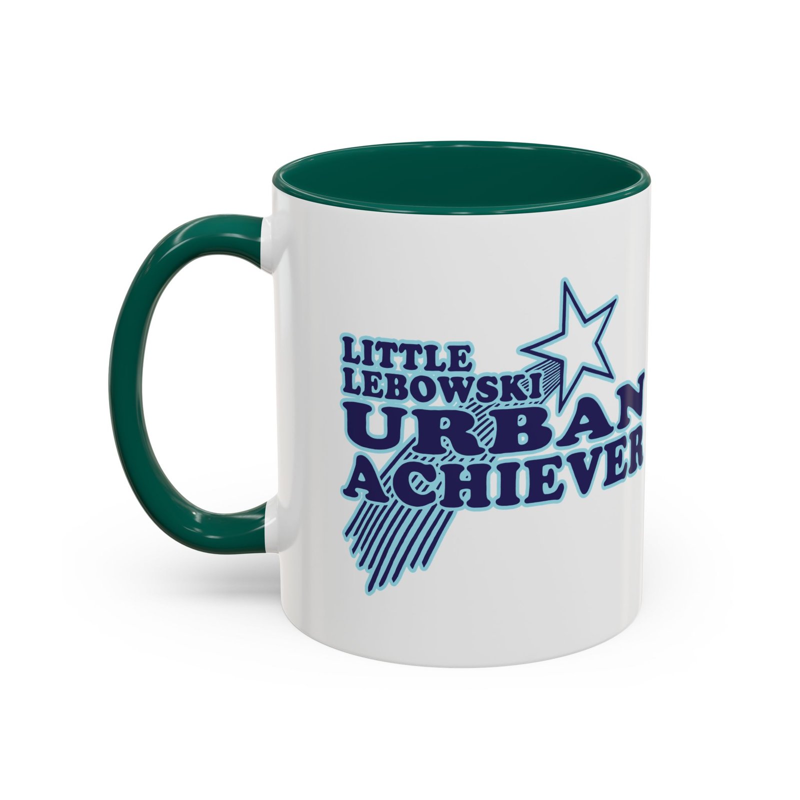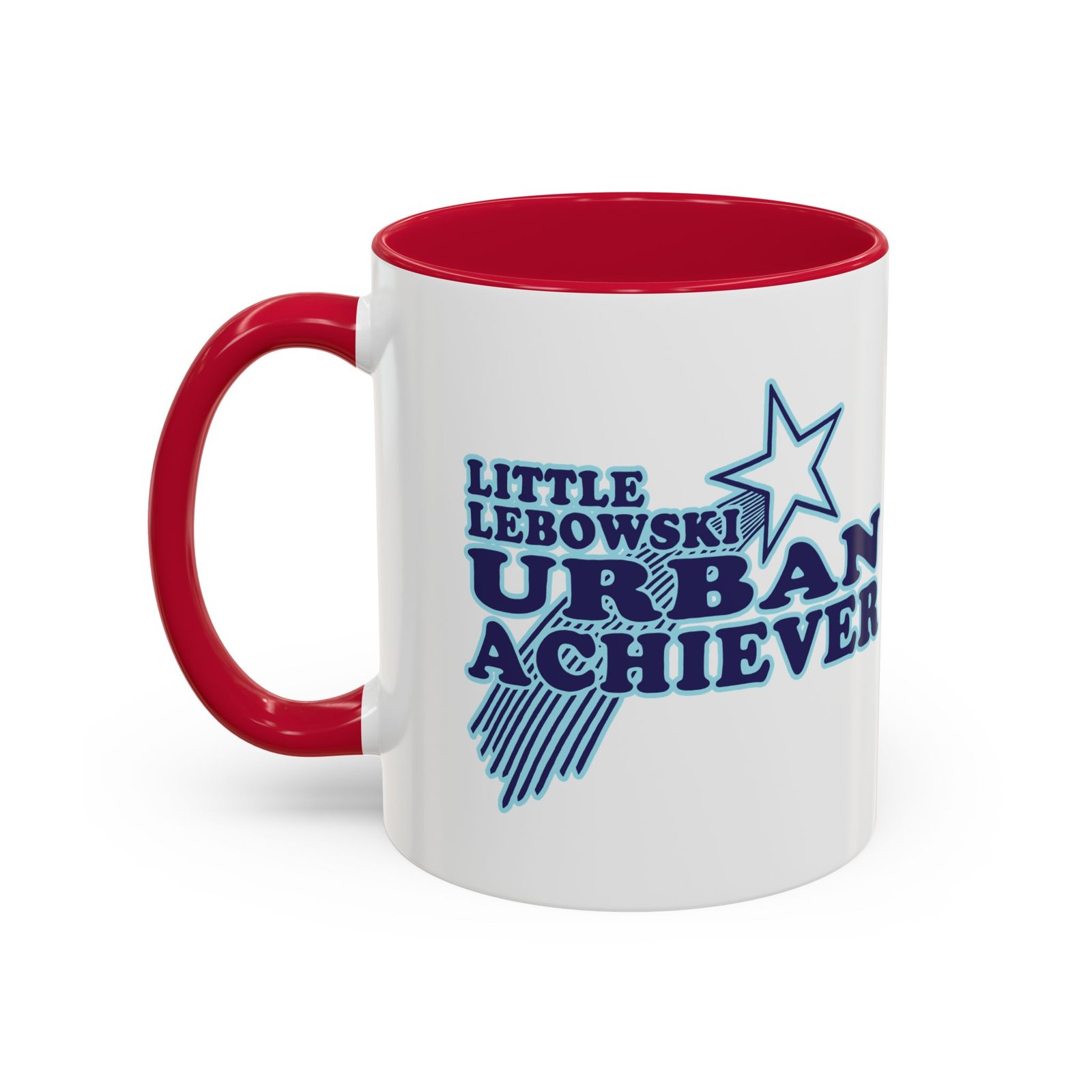 Celebrate modest goals and big dreams with the Little Lebowski Urban Achievers Accent Color Mug, inspired by the unforgettable cult classic The Big Lebowski. Featuring the official-style logo of this hilariously sincere youth outreach program, this mug is perfect for fans who know that sometimes, achievement is just getting through the day with a hot drink.