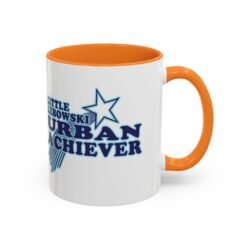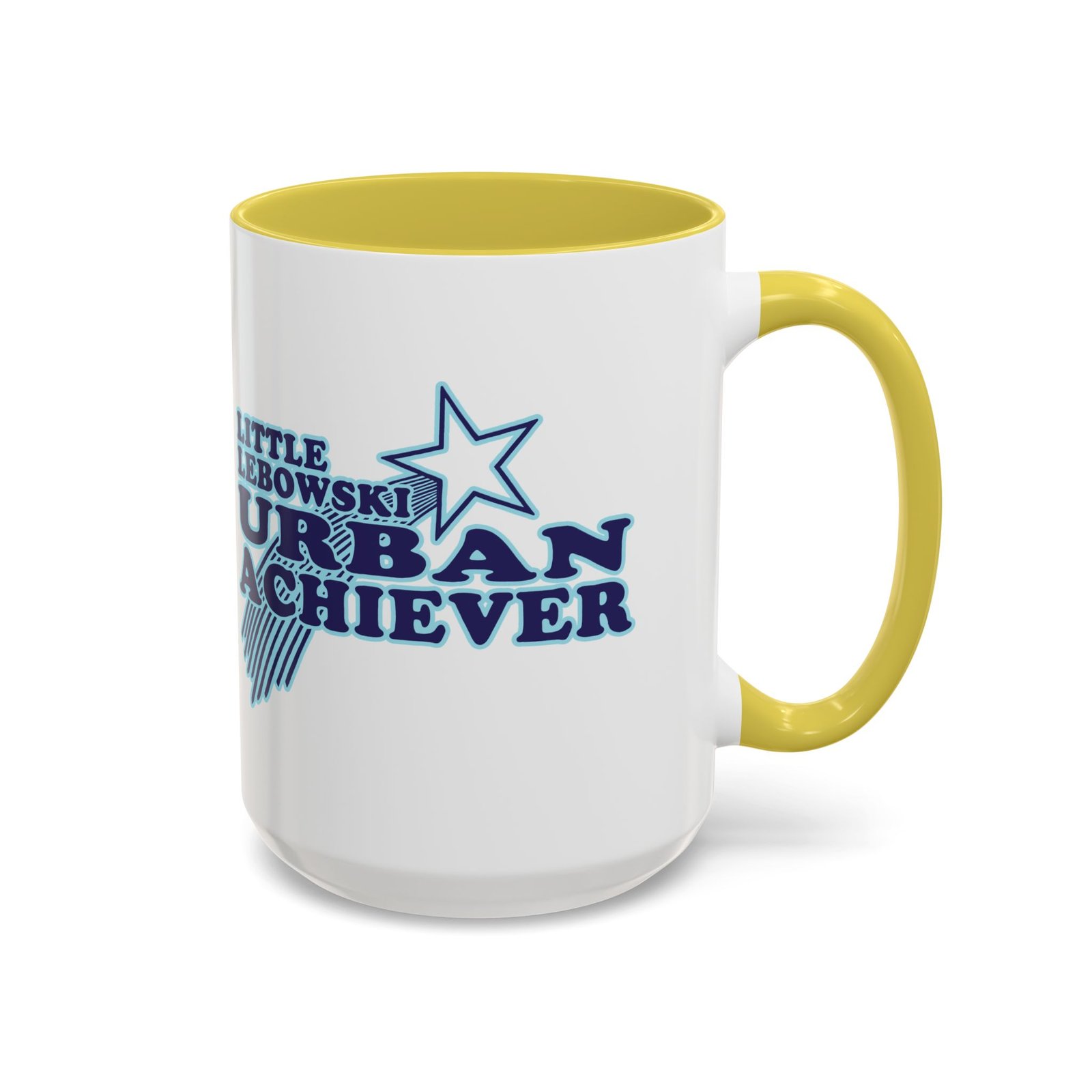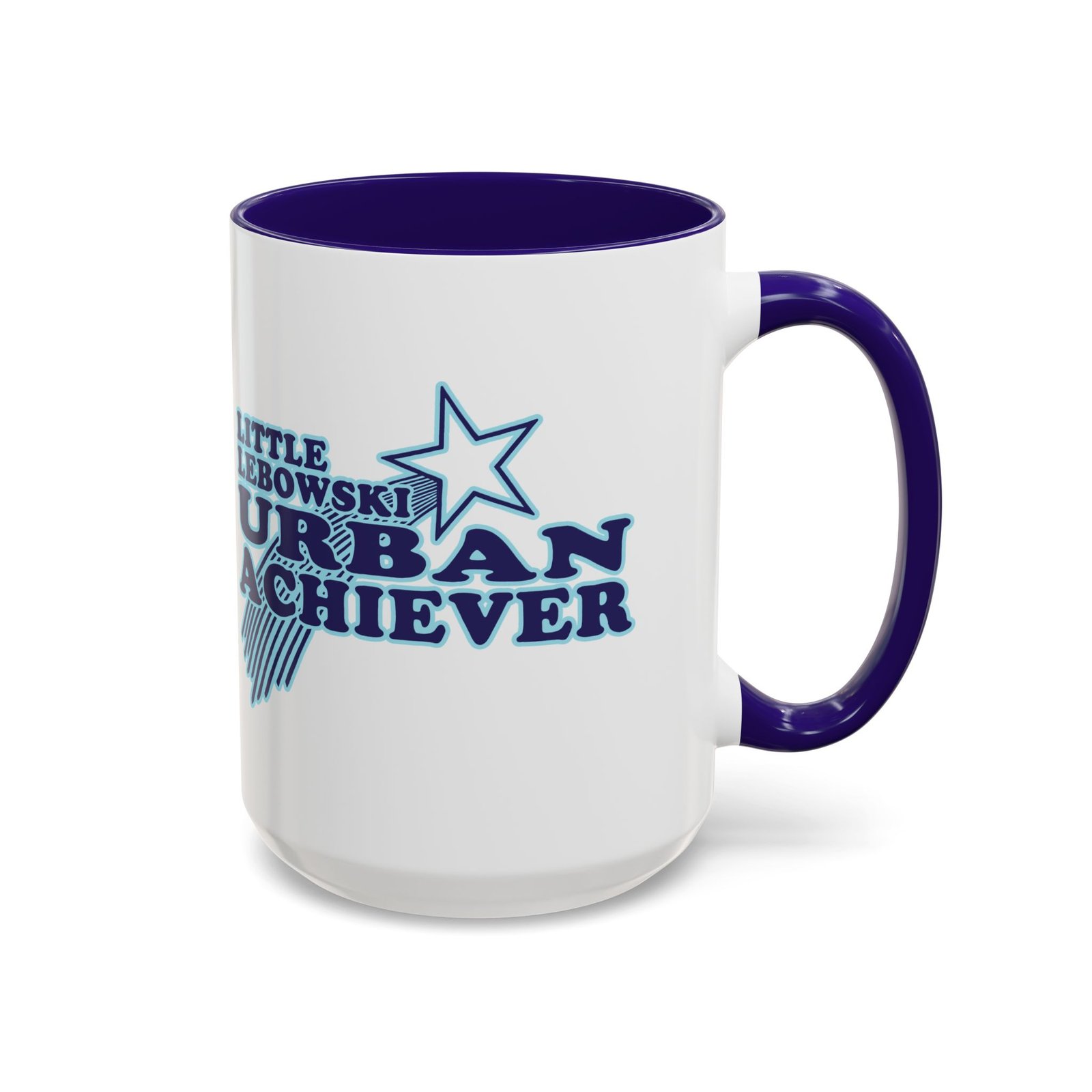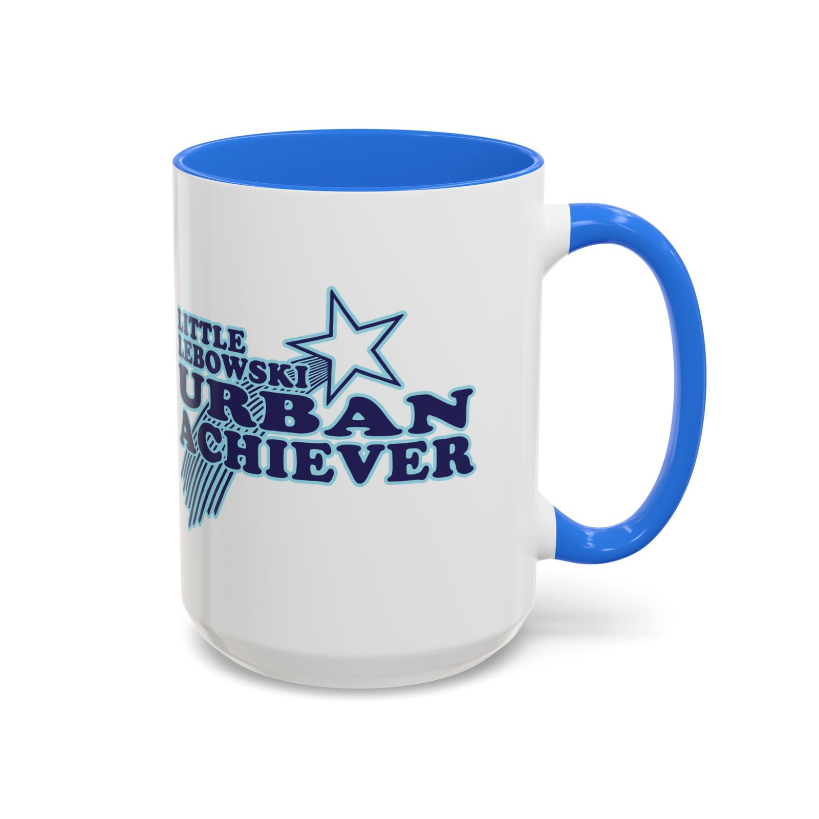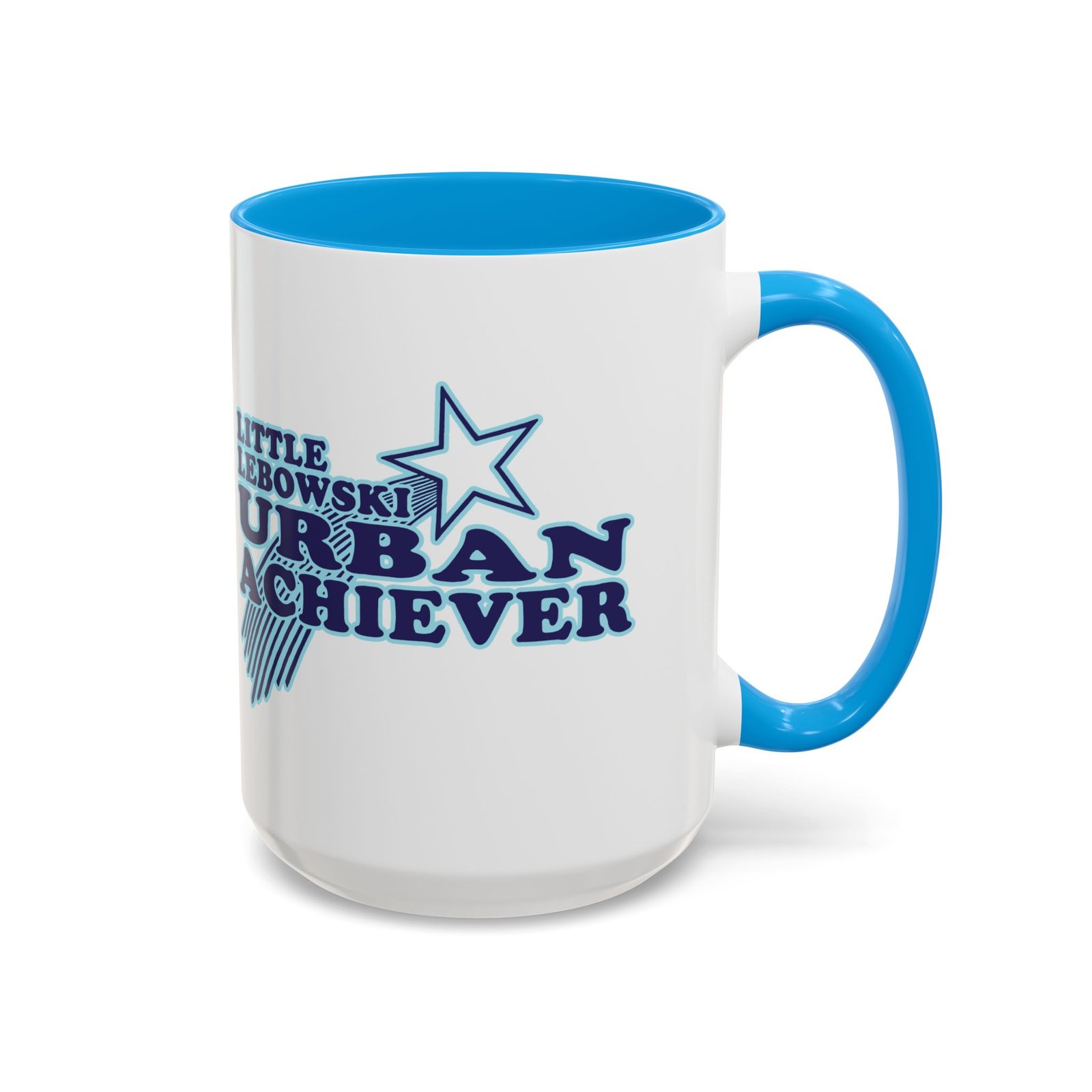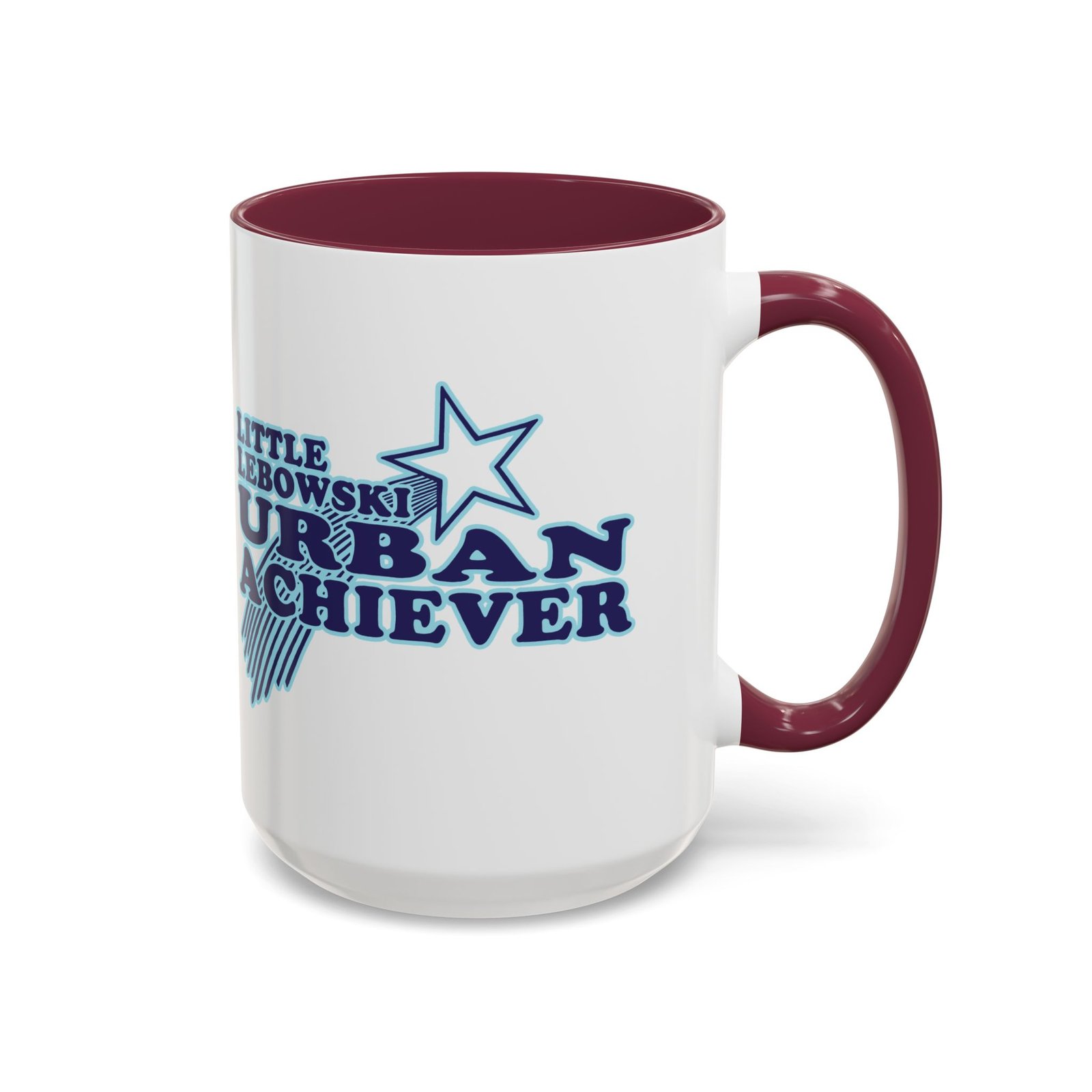 Celebrate modest goals and big dreams with the Little Lebowski Urban Achievers Accent Color Mug, inspired by the unforgettable cult classic The Big Lebowski. Featuring the official-style logo of this hilariously sincere youth outreach program, this mug is perfect for fans who know that sometimes, achievement is just getting through the day with a hot drink.