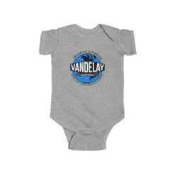 🏢 Classic Comedy Design – Features the Vandelay Industries logo in a clean, professional style—perfect for the smallest (and cutest) importer/exporter in the nursery.
