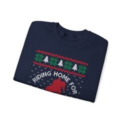 Riding Home for Christmas Sweatshirt, Horse Ugly Christmas Sweater, Equestrian Holiday Shirt, Unisex Winter Pullover, Christmas Horse Jumper Tee, Funny Holiday Sweater, Barn Party Apparel, Festive Riding Outfit, Horseback Christmas Gift, Ugly Sweater with Horse Theme