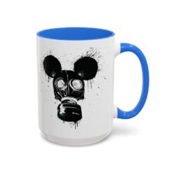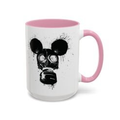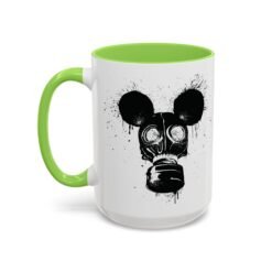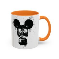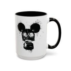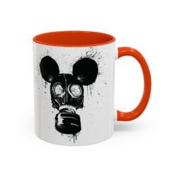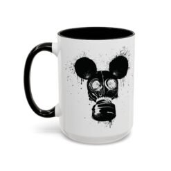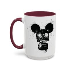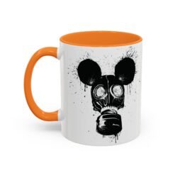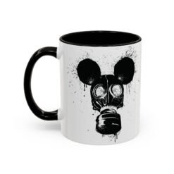 Start your day with a dose of dystopian charm and unexpected cuteness with the Gas Mask Mouse Accent Mug. Featuring a bold design of a mouse head in a gas mask, this eye-catching mug is perfect for those who like their mornings a little weird, a little dark, and totally unique.