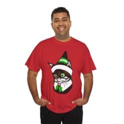 Elf Kitten Shirt, Cute Christmas Cat T-Shirt, Unisex Holiday Cat Tee, Funny Elf Cat Shirt, Meowy Christmas Shirt, Festive Pet Apparel, Cat Lover Christmas Gift, Adorable Holiday Tee, Kitty in Elf Hat Shirt, Whimsical Christmas Cat Clothing