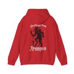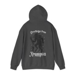 Bundle up in creepy Christmas style with this Greetings From Krampus unisex hoodie! Featuring a bold graphic of Krampus and retro-inspired holiday text, this hoodie delivers festive fright and ultimate comfort. Perfect for those who prefer hooves over reindeer hooves and warnings over warm wishes.