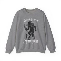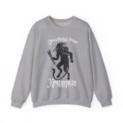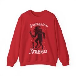 Skip the candy canes and send chills instead with this Greetings From Krampus unisex sweatshirt! Featuring a bold image of Krampus and retro-style holiday text, this comfy pullover is perfect for anyone who prefers their season’s greetings with hooves, horns, and a little horror. It’s the ultimate mashup of festive and frightful.