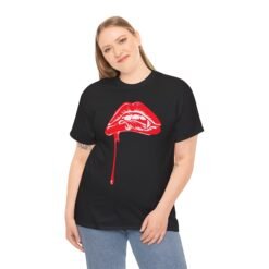 Turn heads (and maybe bite a few) with this Vampire Lips Unisex T-Shirt! Featuring bold red lips, sharp fangs, and a seductive bite dripping with blood, this tee is the perfect mix of danger, desire, and dark Halloween vibes.