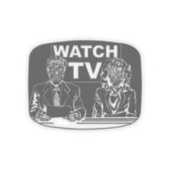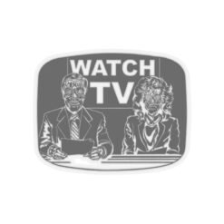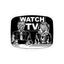 Add a dose of dystopian flair to your space with this Watch TV indoor sticker, inspired by the cult classic They Live. Featuring eerie alien-faced news anchors and the bold directive “Watch TV” on the screen behind them, this sticker is perfect for laptops, notebooks, mirrors, or anywhere you want to spark curiosity and question reality.