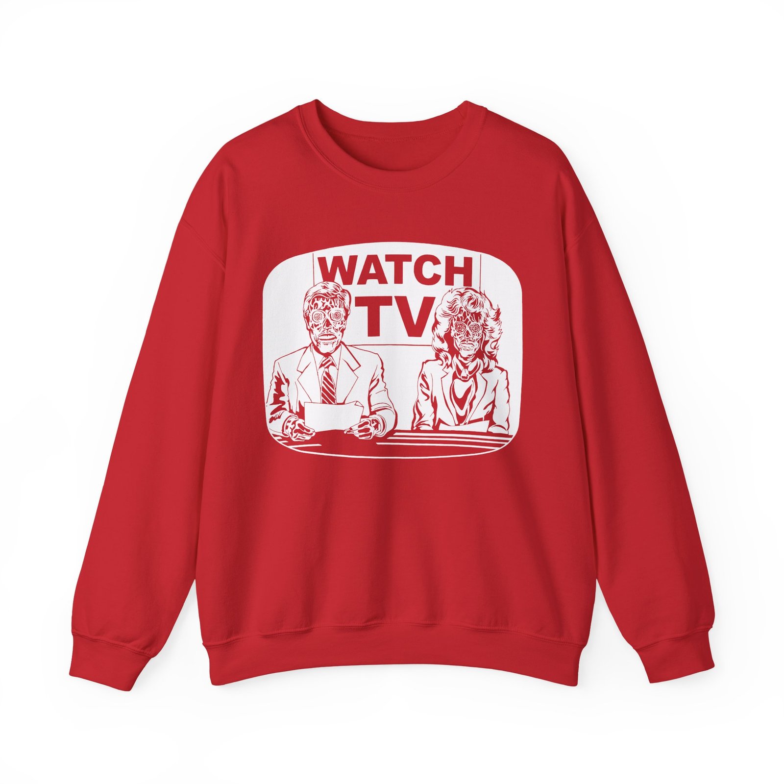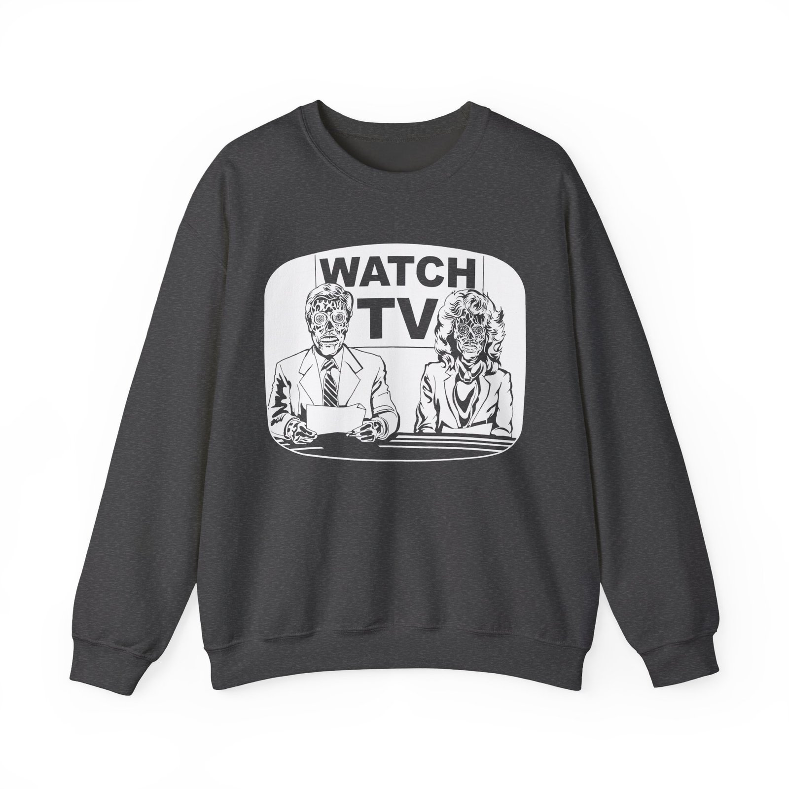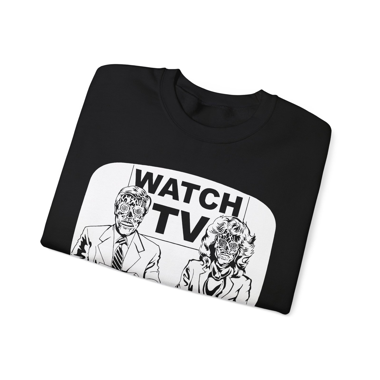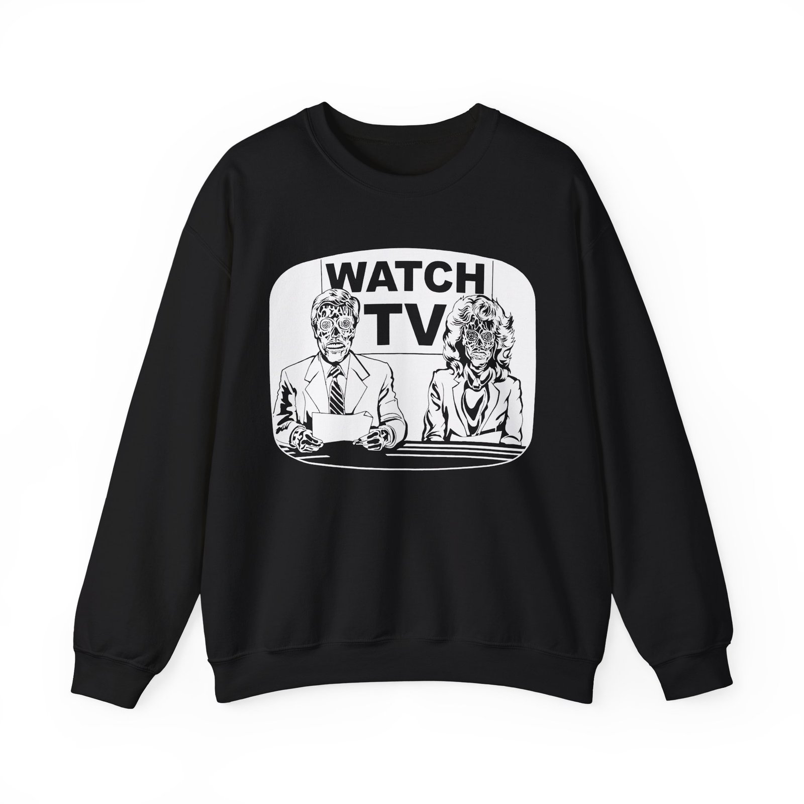 They Live Sweatshirt, Watch TV Pullover, Cult Classic Movie Apparel, Alien Broadcaster Shirt, Sci-Fi Dystopian Clothing, John Carpenter Tribute, Retro Media Control Sweater, Subliminal Message Sweatshirt, Conspiracy Theory Fashion, 80s Sci-Fi Graphic Top