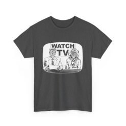 Step into the eerie world of media manipulation with this bold Watch TV unisex t-shirt, inspired by the cult classic movie They Live. Featuring a male and female news anchor with alien faces and the chilling phrase “Watch TV” on the screen behind them, this design channels the film’s iconic blend of satire, sci-fi, and social commentary. Perfect for fans of the strange, the subversive, and the subliminal.