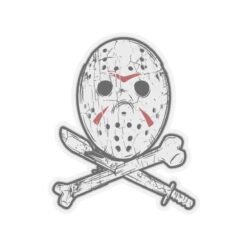 Bring a slash of horror to any space with the Camp Slasher Indoor Sticker. Featuring Jason Voorheesβ iconic hockey mask and two crossed machetes in a bold Jolly Roger-style design, this sticker is the perfect touch of creepy cool for laptops, notebooks, water bottles, or wherever you dare to decorate.