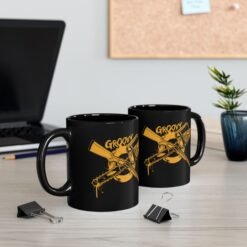 Start your mornings with a battle cry and a brew! This Groovy black mug features a bold design of a crossed boomstick and chainsaw with the word βGroovyβ standing loud and proud above. Whether you’re fighting off Deadites or just waking up like one, this mugβs got your back.