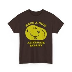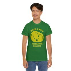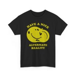 Bend minds and spread mysterious cheer with this Have A Nice Alternate Reality unisex t-shirt! Featuring a trippy design of two smiley faces merging into one, this tee is perfect for dreamers, sci-fi lovers, and anyone who knows reality is… negotiable.