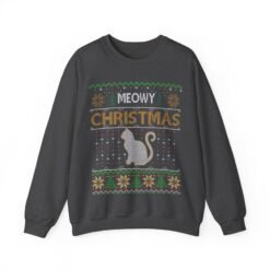 Deck the halls with claws and whiskers in this Meowy Christmas unisex sweatshirt! Designed in classic ugly Christmas sweater style, it features a festive cat surrounded by pixelated snowflakes, ornaments, and just the right amount of cattitude. Itβs cozy, quirky, and the ultimate holiday treat for feline fans.