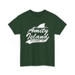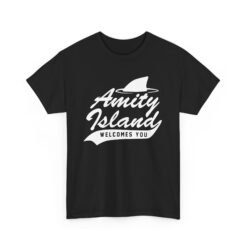 Head to the beach—but maybe don’t swim too far—with this classic Amity Island Welcomes You tee. Featuring a bold shark fin slicing the water above the sunny greeting, it’s perfect for fans of suspense, summer thrills, and iconic seaside disasters.