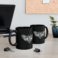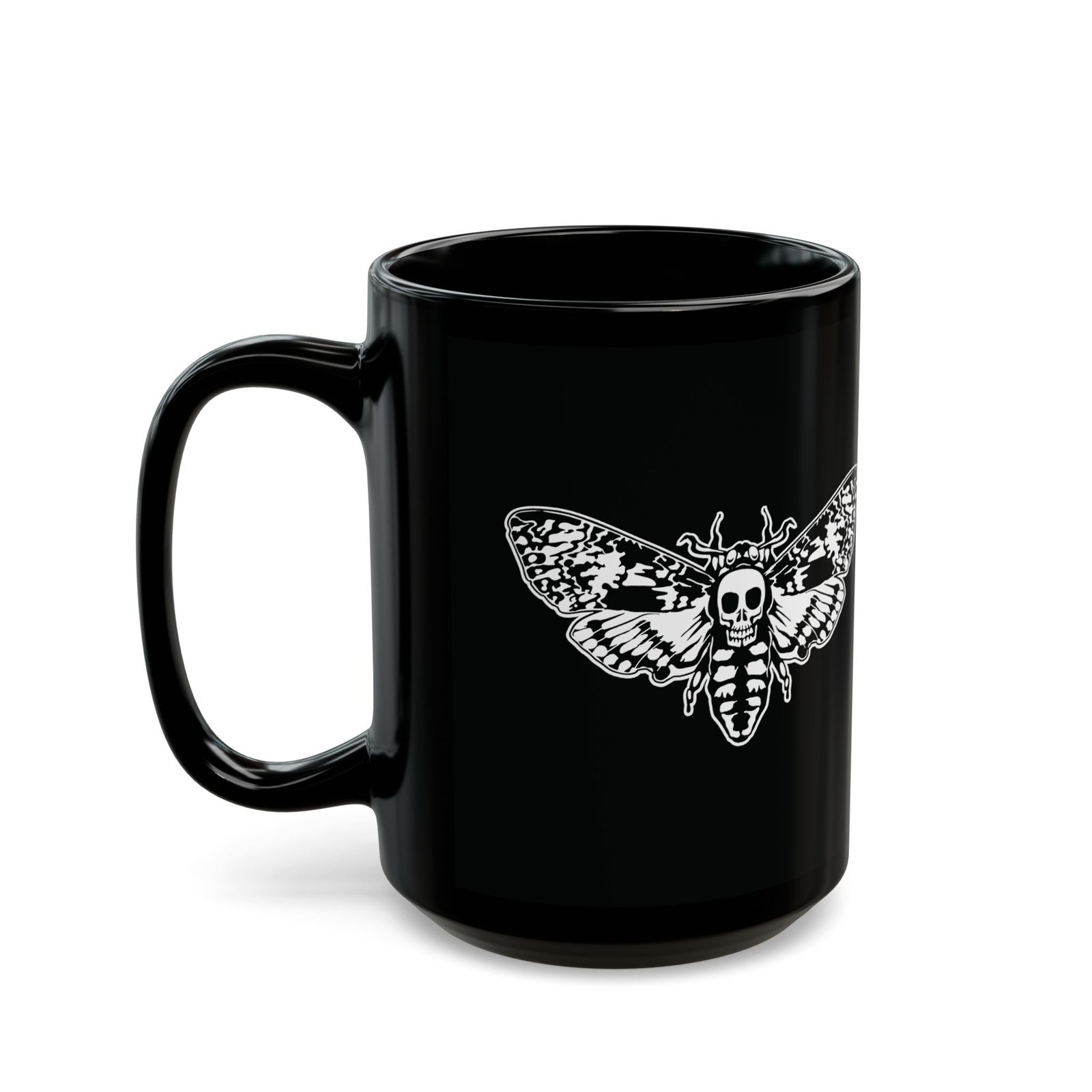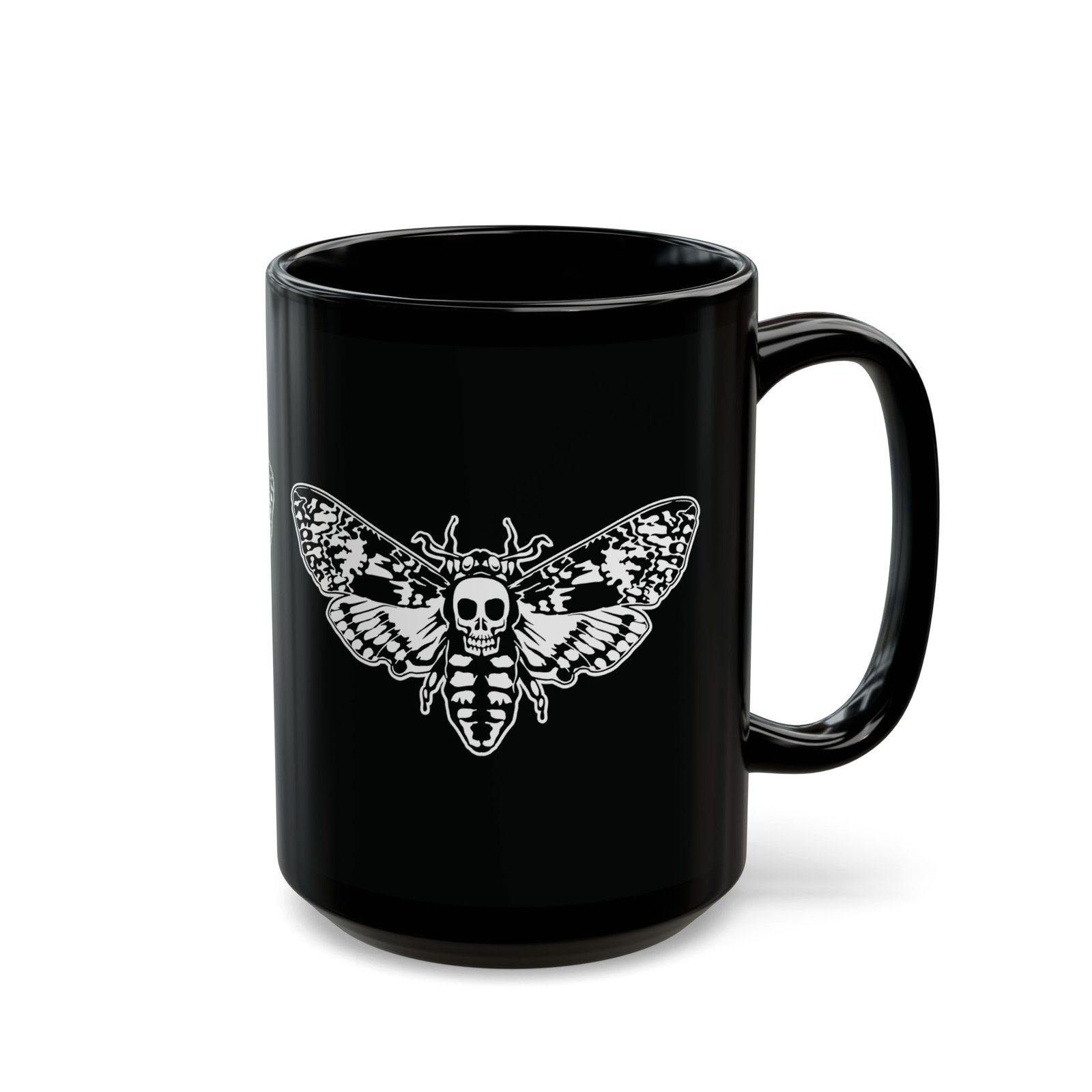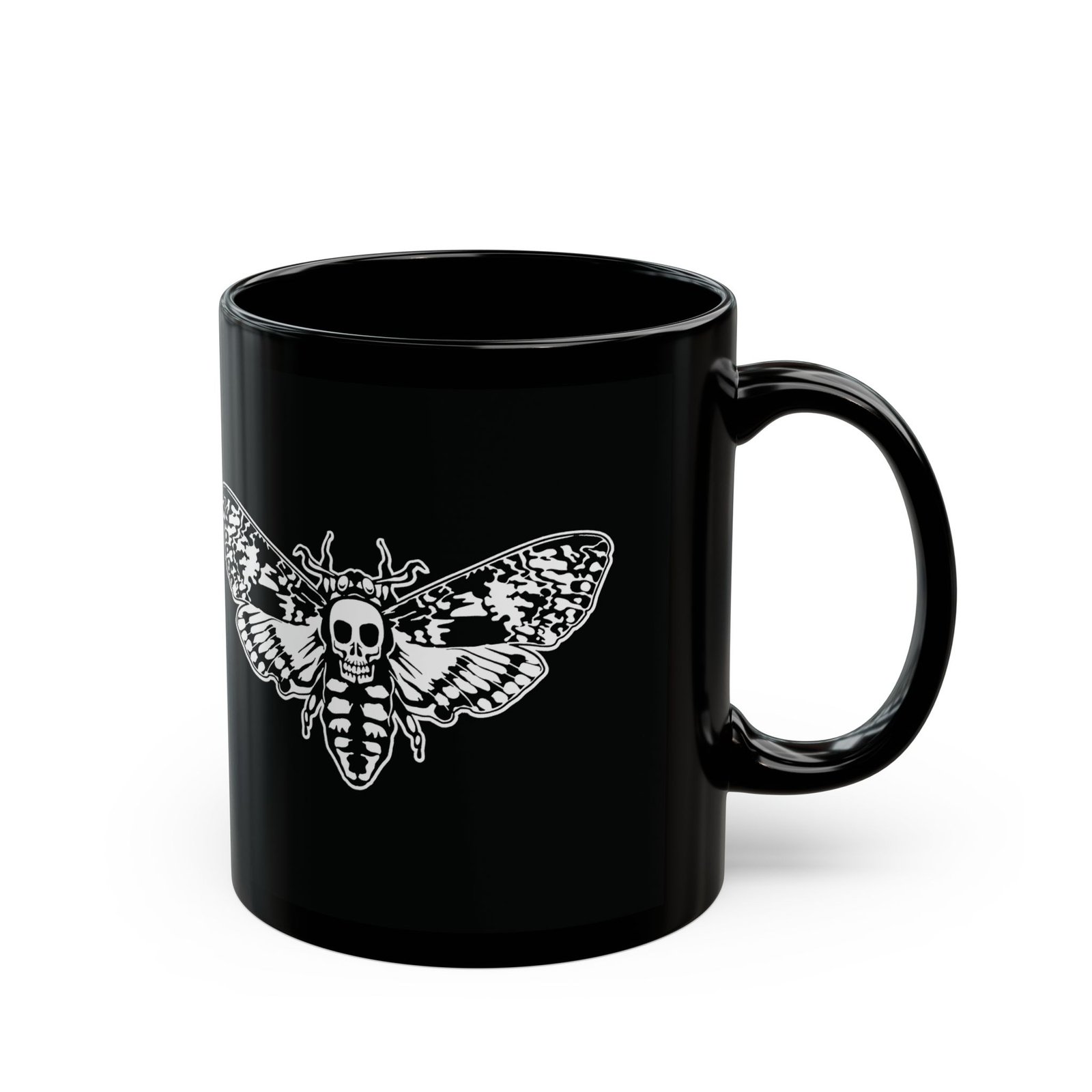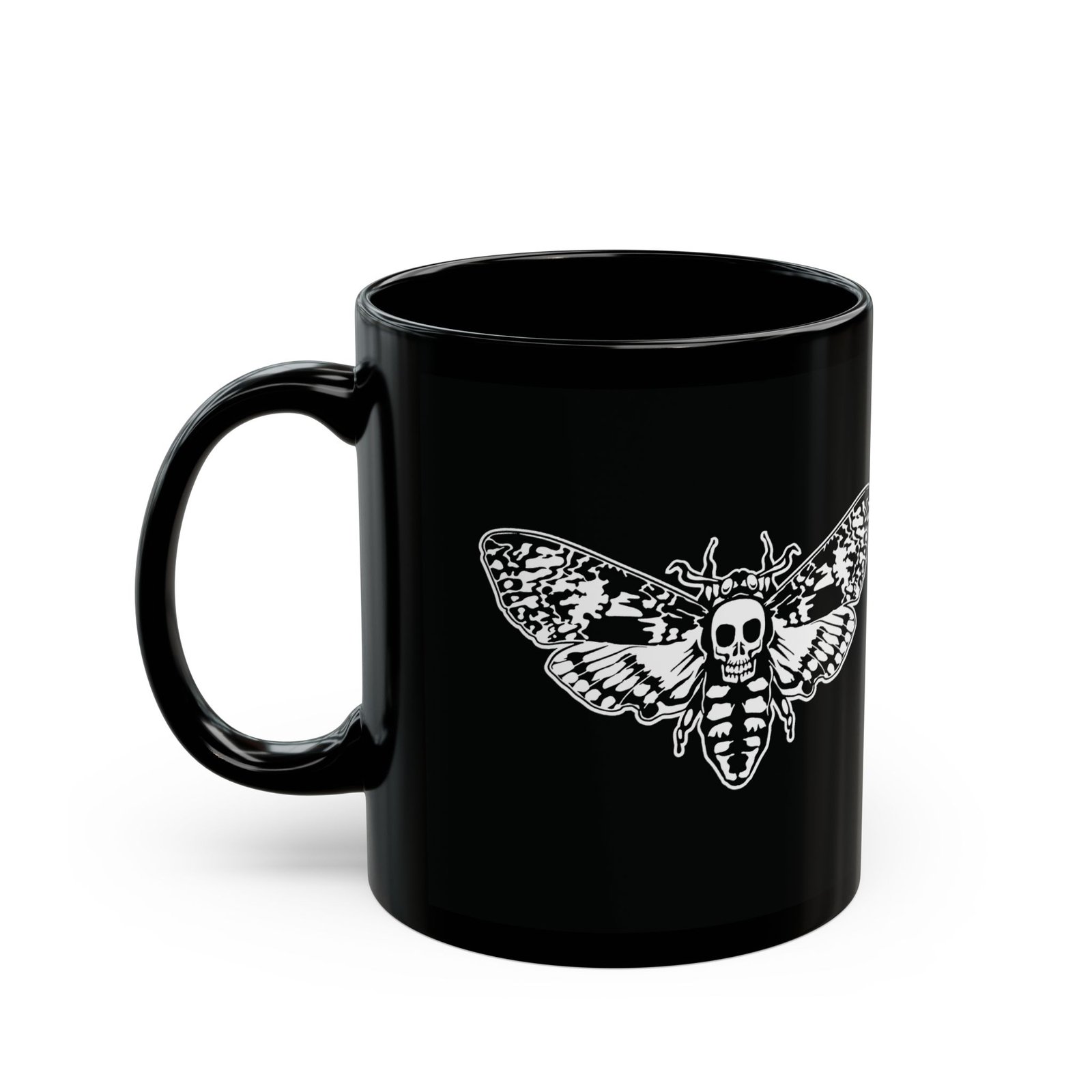 🦋 Death’s Head Moth Black Mug – Dark Elegance with Every Sip