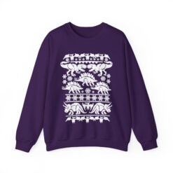 Stomp into the holidays with this Dino-Mite Christmas unisex sweatshirt, featuring a herd of pixelated dinosaurs dressed to impress in classic ugly Christmas sweater style! Complete with snowflakes, trees, and roaring holiday spirit, this cozy pullover is perfect for warming up while bringing the Jurassic jingle.
