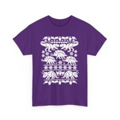 Get ready to stomp into the holidays with this Dino-Mite Christmas unisex t-shirt, featuring pixelated dinosaurs decked out in full ugly Christmas sweater fashion! With snowflakes, trees, and roaring good vibes, this tee brings Jurassic joy to every festive occasion.
