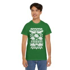 🦖🎄 Dino-Mite Christmas Unisex T-Shirt – Ugly Sweater Style with Prehistoric Cheer