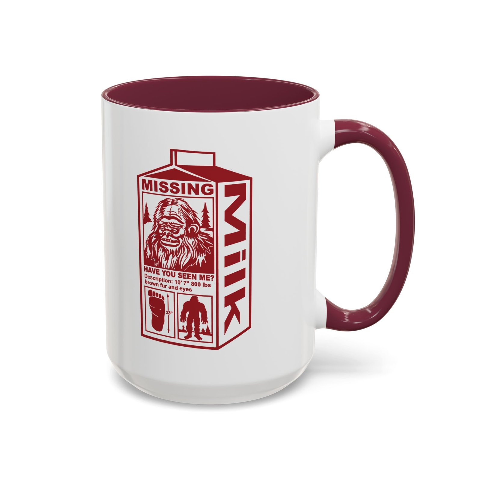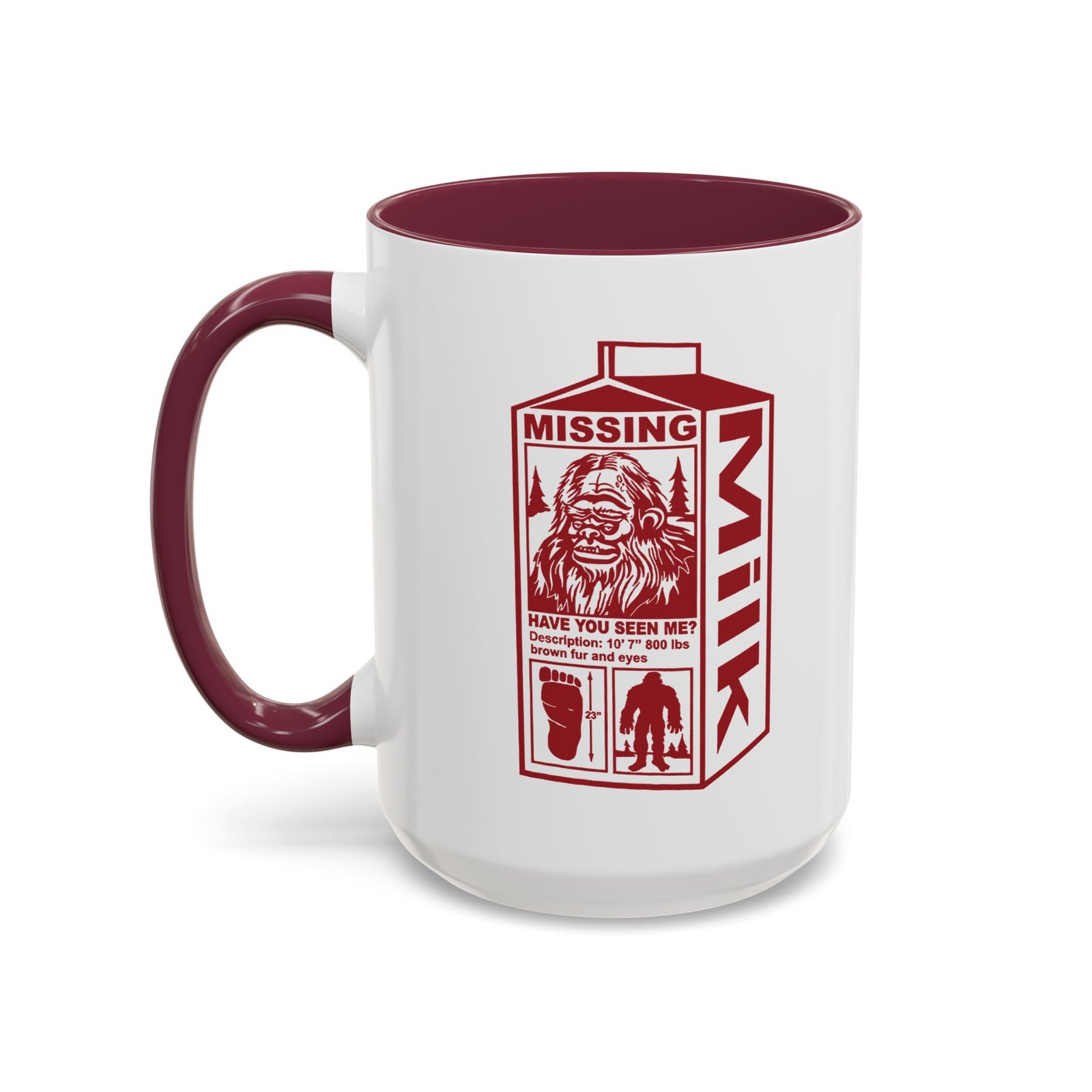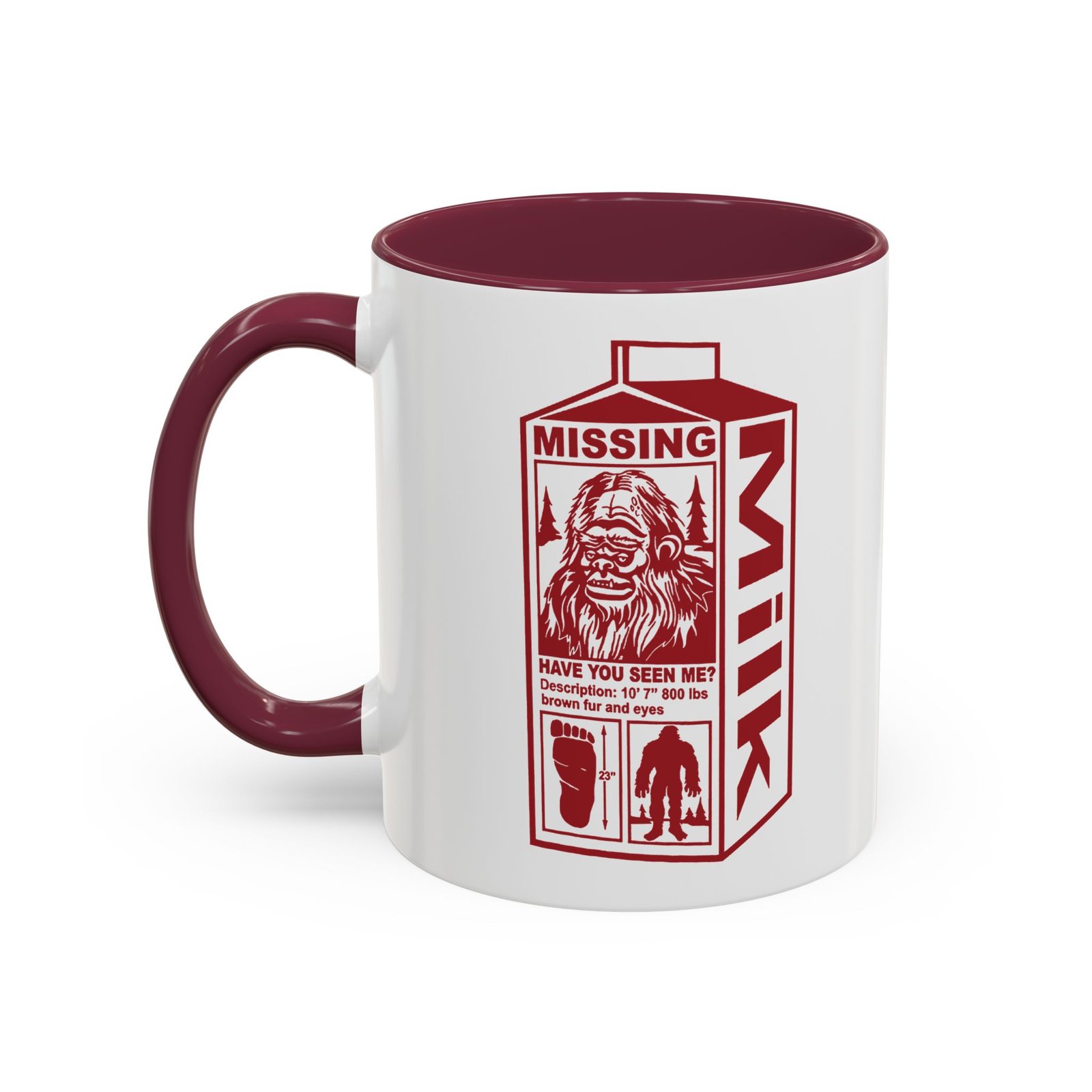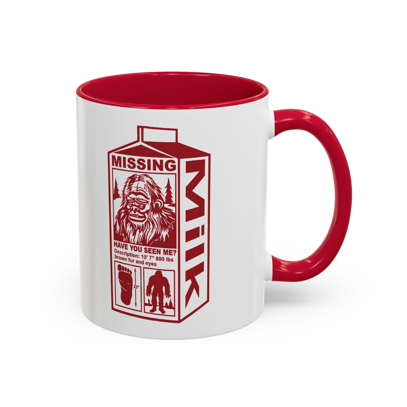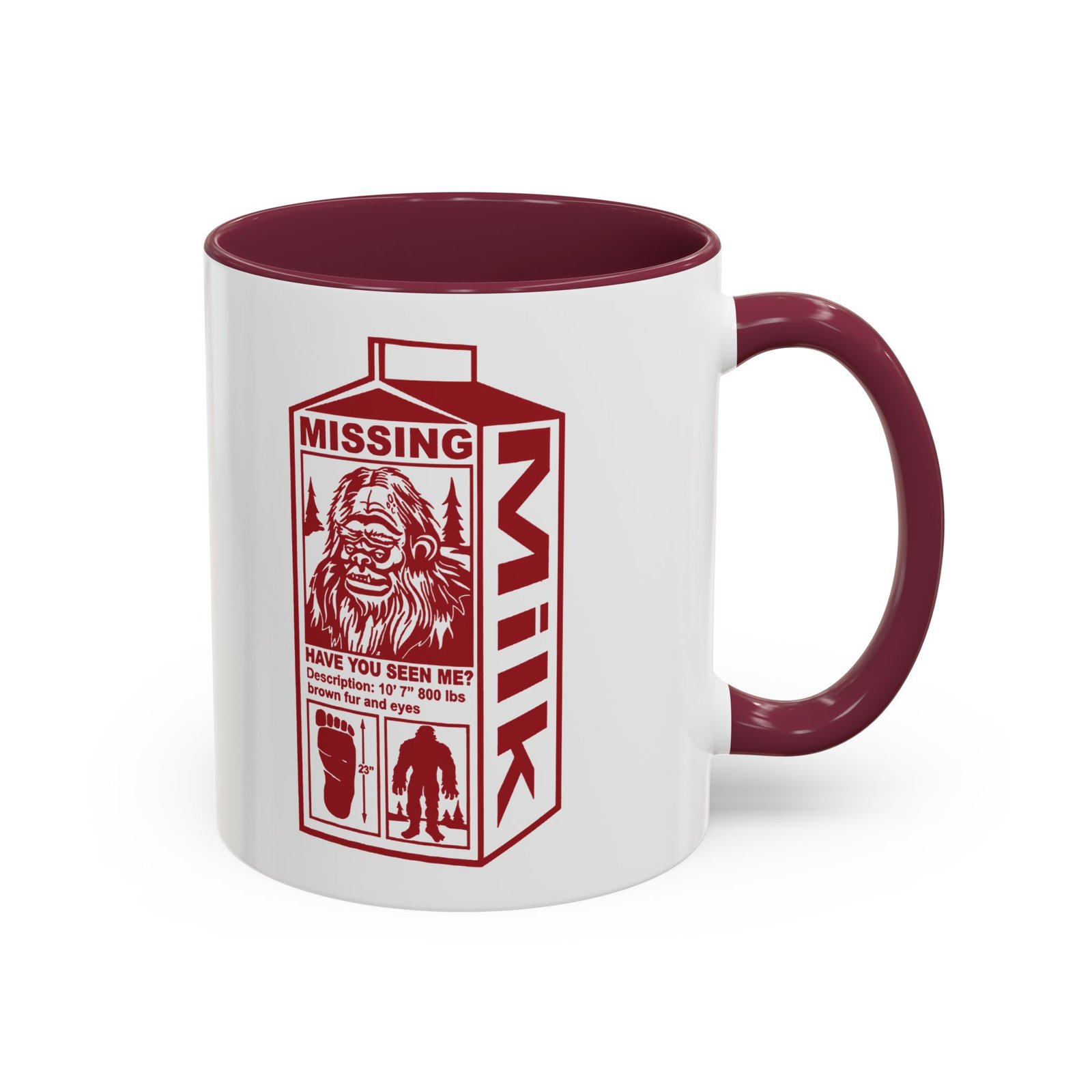 Bigfoot Mug, Funny Milk Carton Mug, Color Accent Coffee Cup, Missing Sasquatch Mug, Cryptid Humor Drinkware, Mythical Creature Mug, Hilarious Coffee Gift, Unexplained Sighting Mug