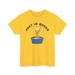 When life gets cheesy, embrace it in style with this Just In Queso unisex t-shirt! Featuring a fun graphic of a tortilla chip diving into a gooey cup of queso, this tee is perfect for snack lovers, pun fans, and anyone who knows queso is the answer—no matter the question.