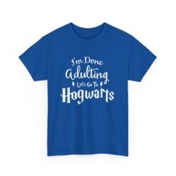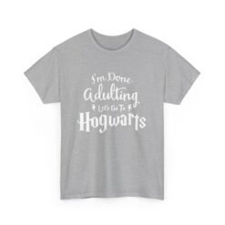 Escape the daily grind in style with this I’m Done Adulting, Let’s Go to Hogwarts unisex t-shirt. Featuring whimsical lettering and a touch of fantasy flair, this tee is perfect for dreamers, escapists, and anyone who’d rather trade bills and meetings for spells and mysteries—even if only in spirit.