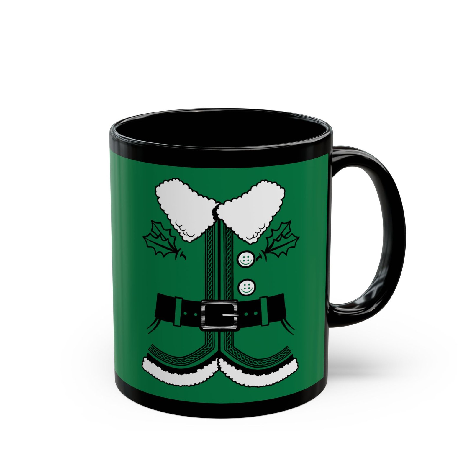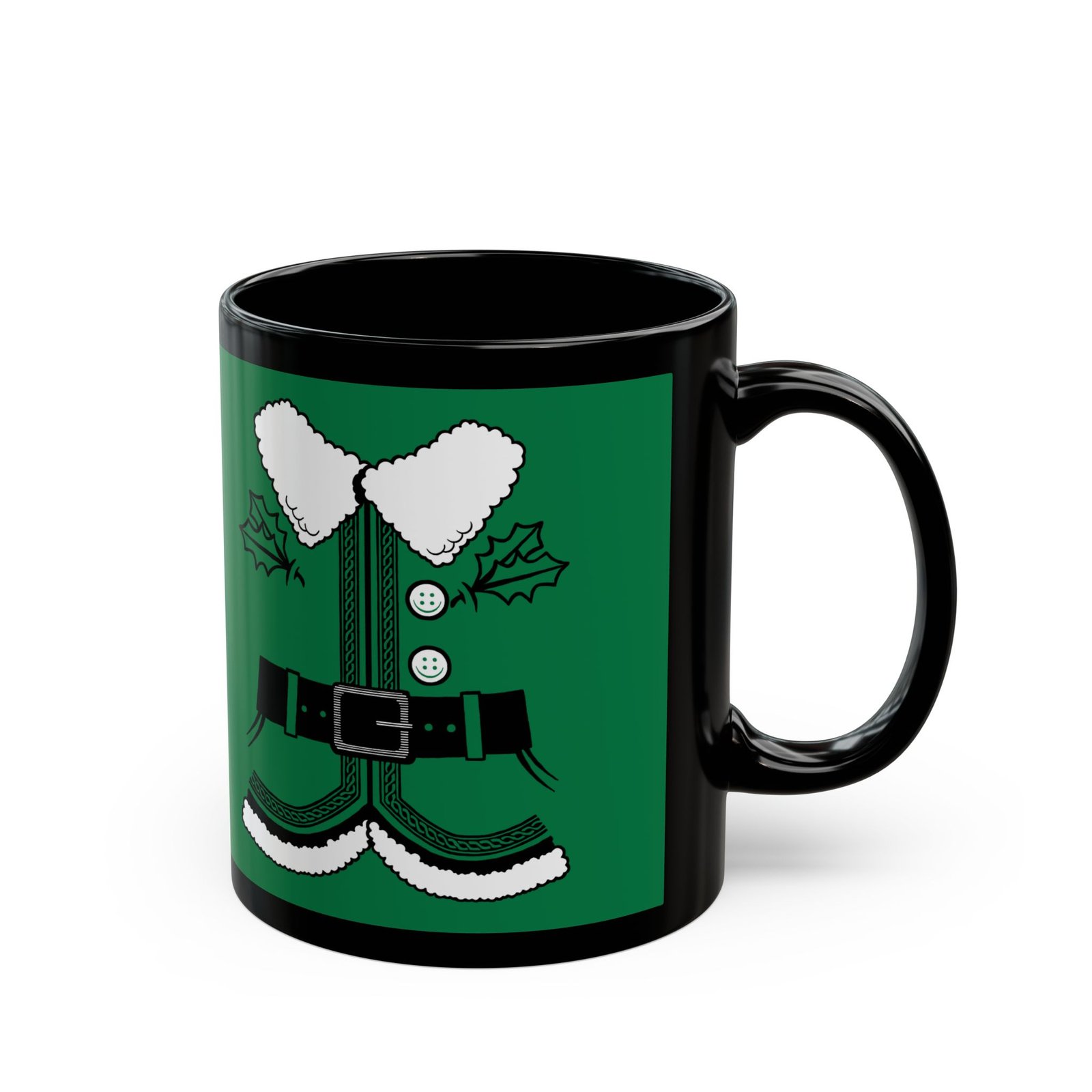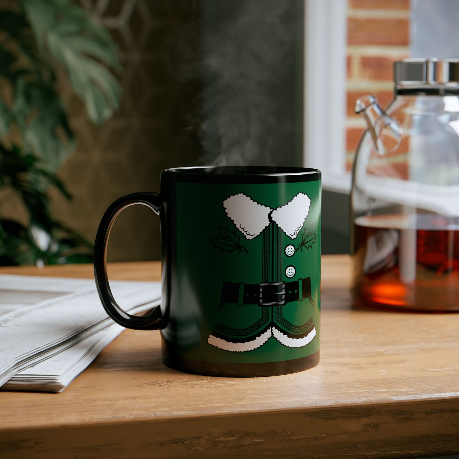 Elf Costume Mug, Holiday Coffee Cup, Christmas Tunic Mug, Black Elf Mug, Santa’s Helper Gift, Festive Drinkware, Funny Holiday Mug, Christmas Party Mug