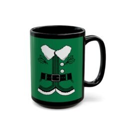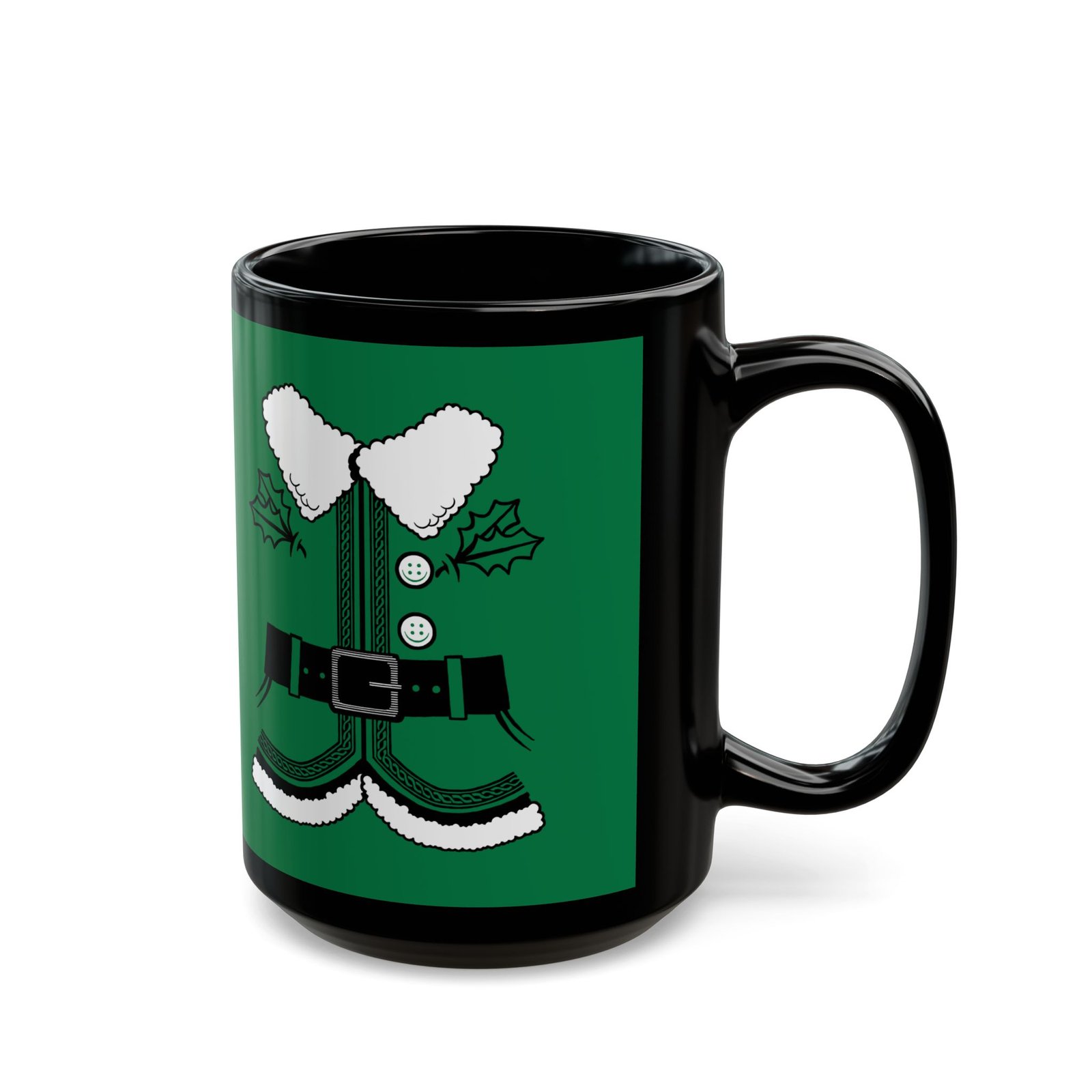 Bring the holiday magic to your morning brew with this Elf Tunic Black Mug! Featuring a fun printed design that mimics a classic elf outfit—complete with buttons and belt—this festive mug makes every sip feel like a trip to the North Pole.