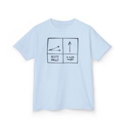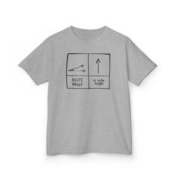 Learning meets laughter with this adorable kids’ tee featuring a simple diagram of an acute angle labeled Acute Angle next to an arrow labeled A Cute Angel. It’s a playful way to make math fun while showing off your little one’s sense of humor.