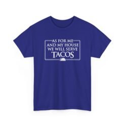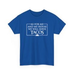 Tags: As for Me and My House We Will Serve Tacos Shirt, Funny Taco T-Shirt, Foodie Humor Tee, Unisex Faith and Food Shirt, Taco Tuesday Graphic Tee, Christian Humor Shirt, Family Dinner Tee, Mexican Food Lover Shirt, Faith with Flavor T-Shirt, Funny Kitchen Quote Tee
