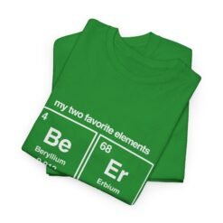 Show off your love for science and happy hour with this clever unisex tee featuring Beryllium (Be) and Erbium (Er) from the periodic table—spelling out BEER. It’s the perfect blend of geeky and cheeky, ideal for chemistry buffs and brew enthusiasts alike.