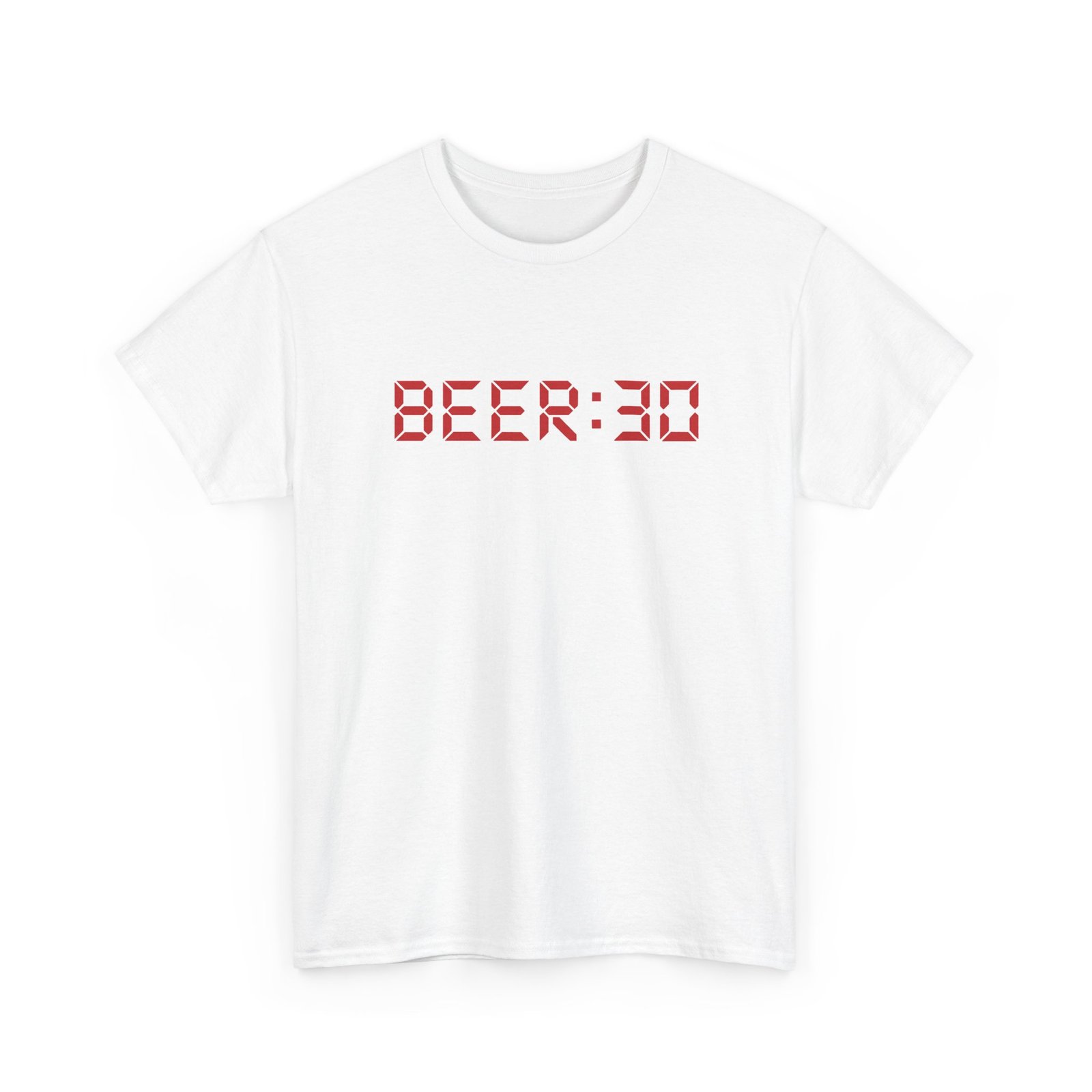 Clock out in style with this unisex tee featuring BEER:30 in bold red digital clock numbers. Perfect for anyone who believes the best time of day starts with an ice-cold brew.