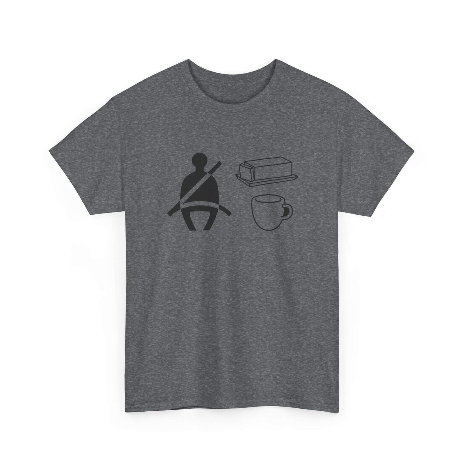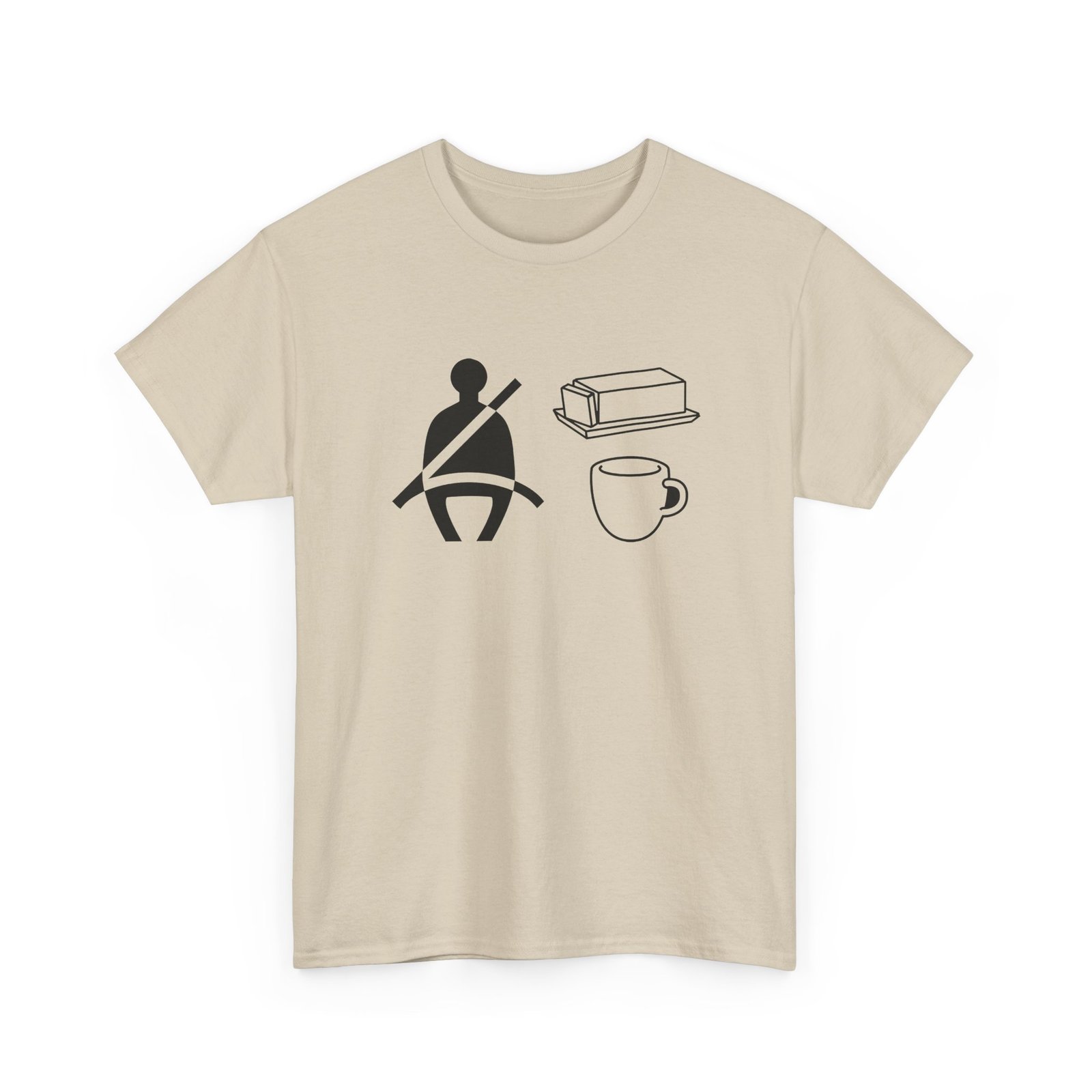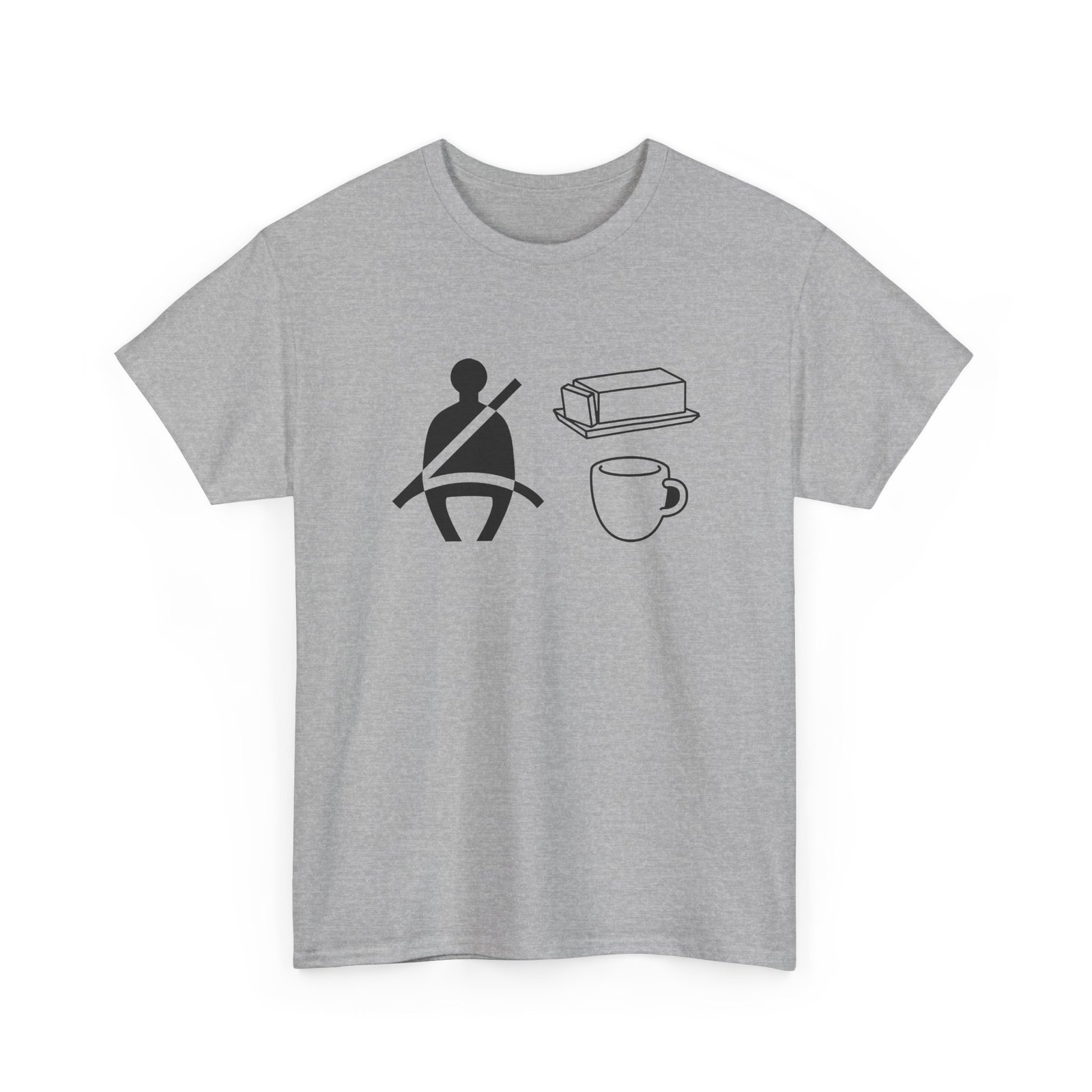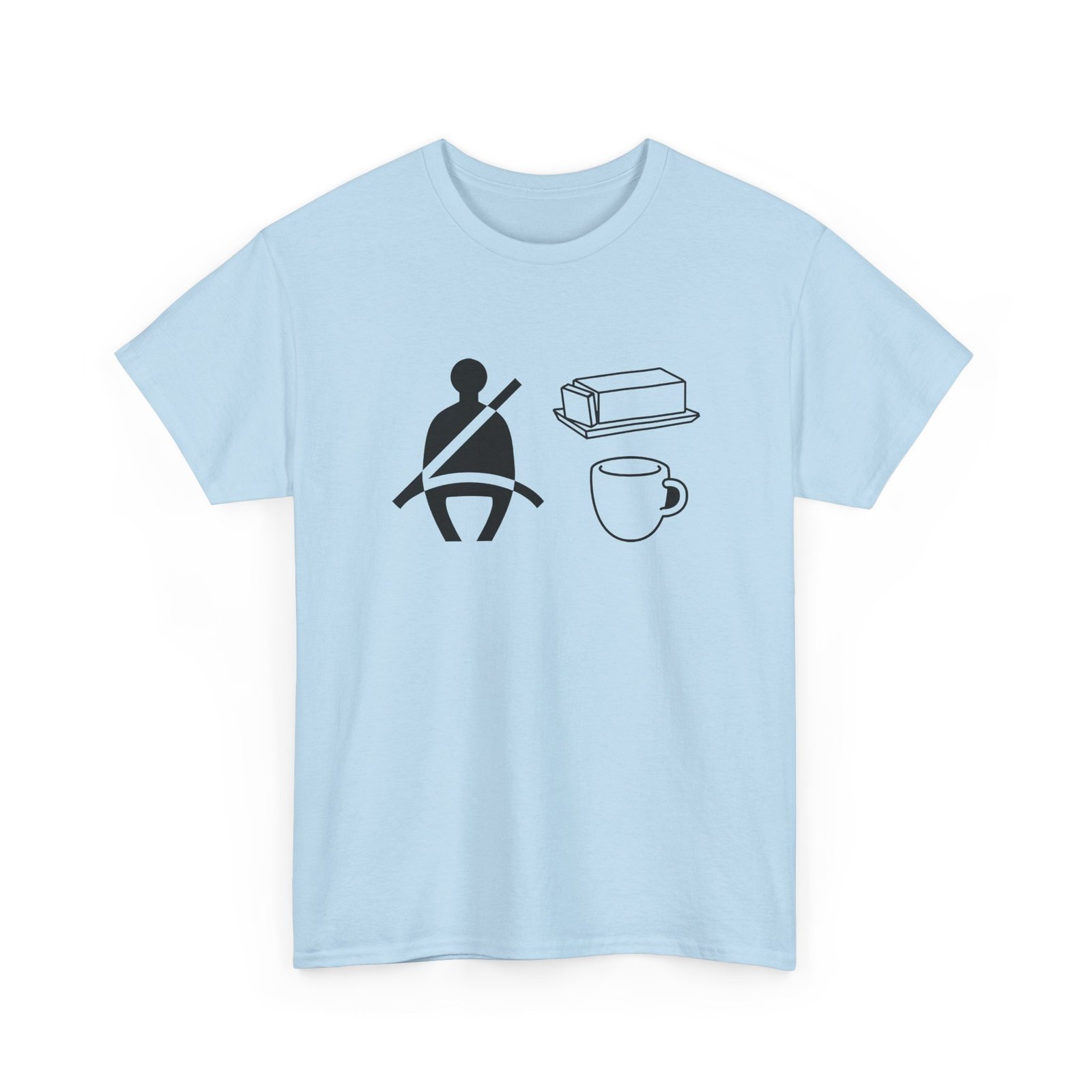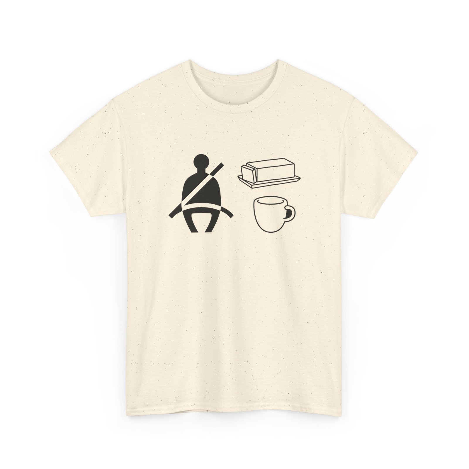 Bring the laughs with this clever unisex tee featuring a stick figure buckled in with a seatbelt, a stick of butter, and a coffee cup—together spelling out the classic phrase Buckle Up Buttercup. It’s a playful visual pun that’s perfect for road trips, coffee lovers, and anyone who enjoys a good joke.