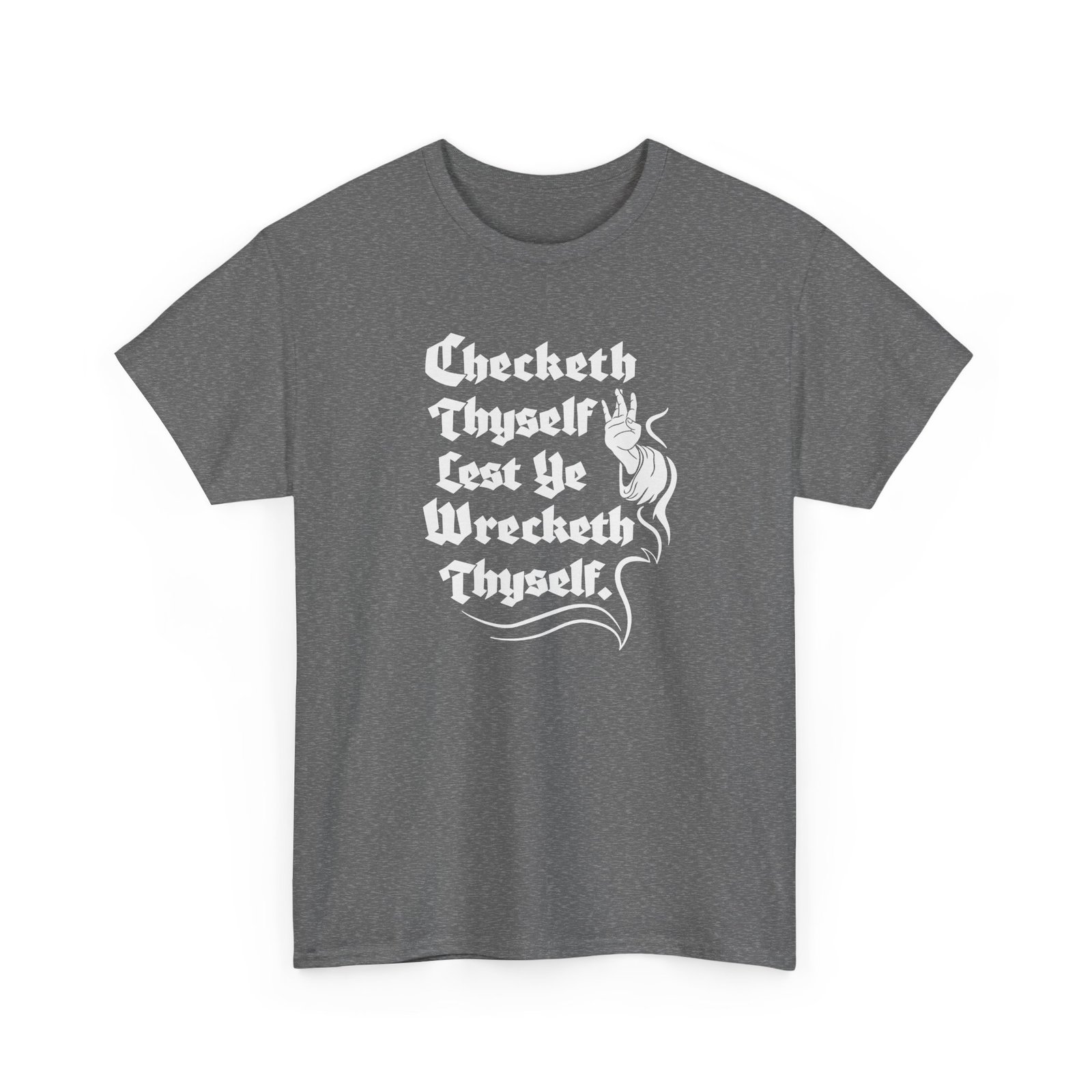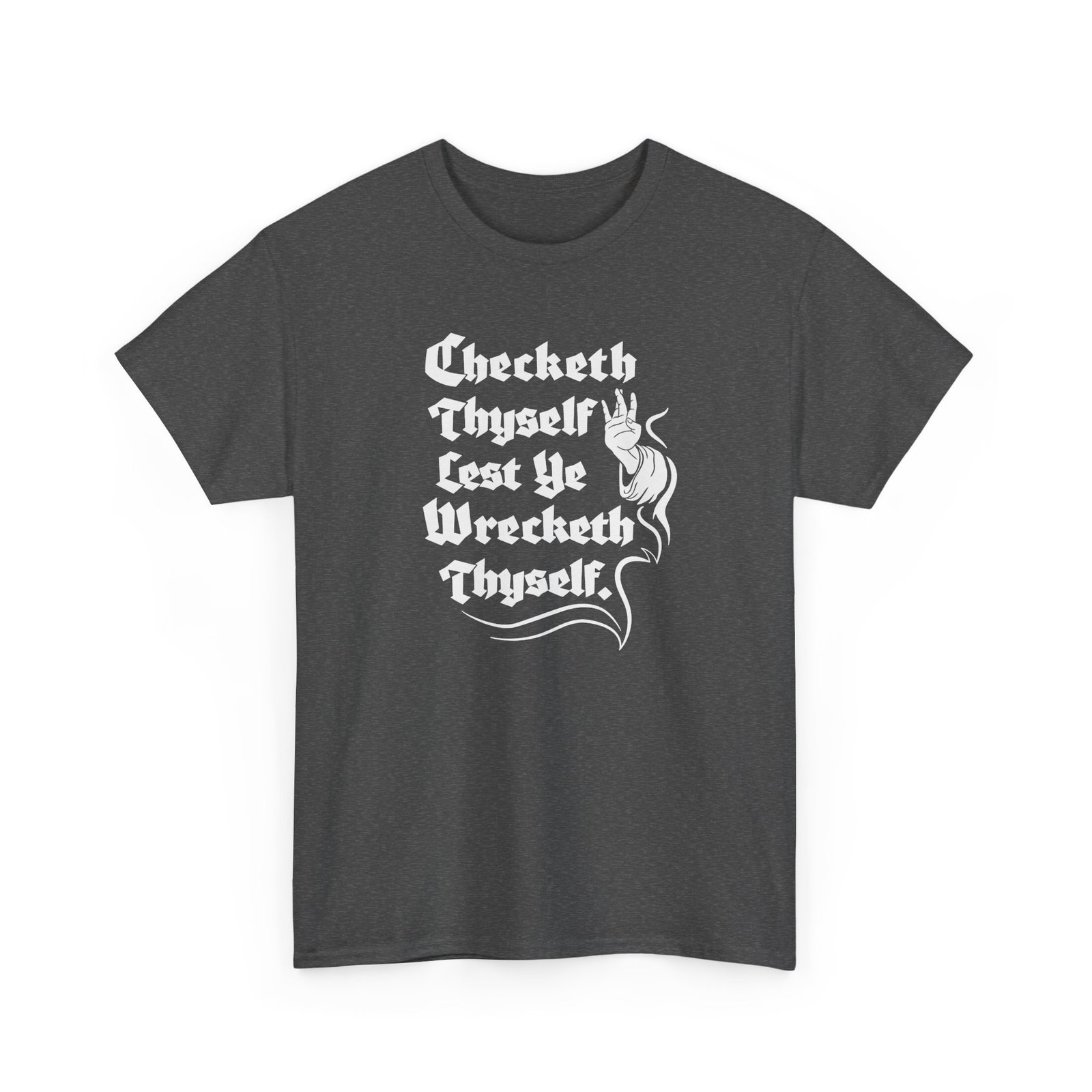 “Check Thyself Lest Ye Wrecketh Thyself” Unisex T-Shirt – Medieval Wisdom, Modern Attitude