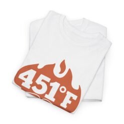 Make a bold literary statement with the 451° F Unisex T-Shirt. Featuring a striking image of a flame rising from an open book, with “451° F” glowing at the center, this design is a powerful nod to the dystopian classic that warned us all about the cost of censorship.