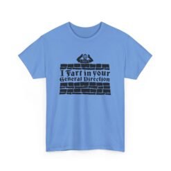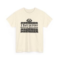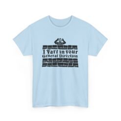Declare your allegiance to absurdity with the I Fart in Your General Direction Unisex T-Shirt, featuring the legendary French Taunter from Monty Python and the Holy Grail. With the smug knight peeking over the castle wall and his most unforgettable insult front and center, this shirt is perfect for fans who prefer their humor irreverent, ridiculous, and proudly British.