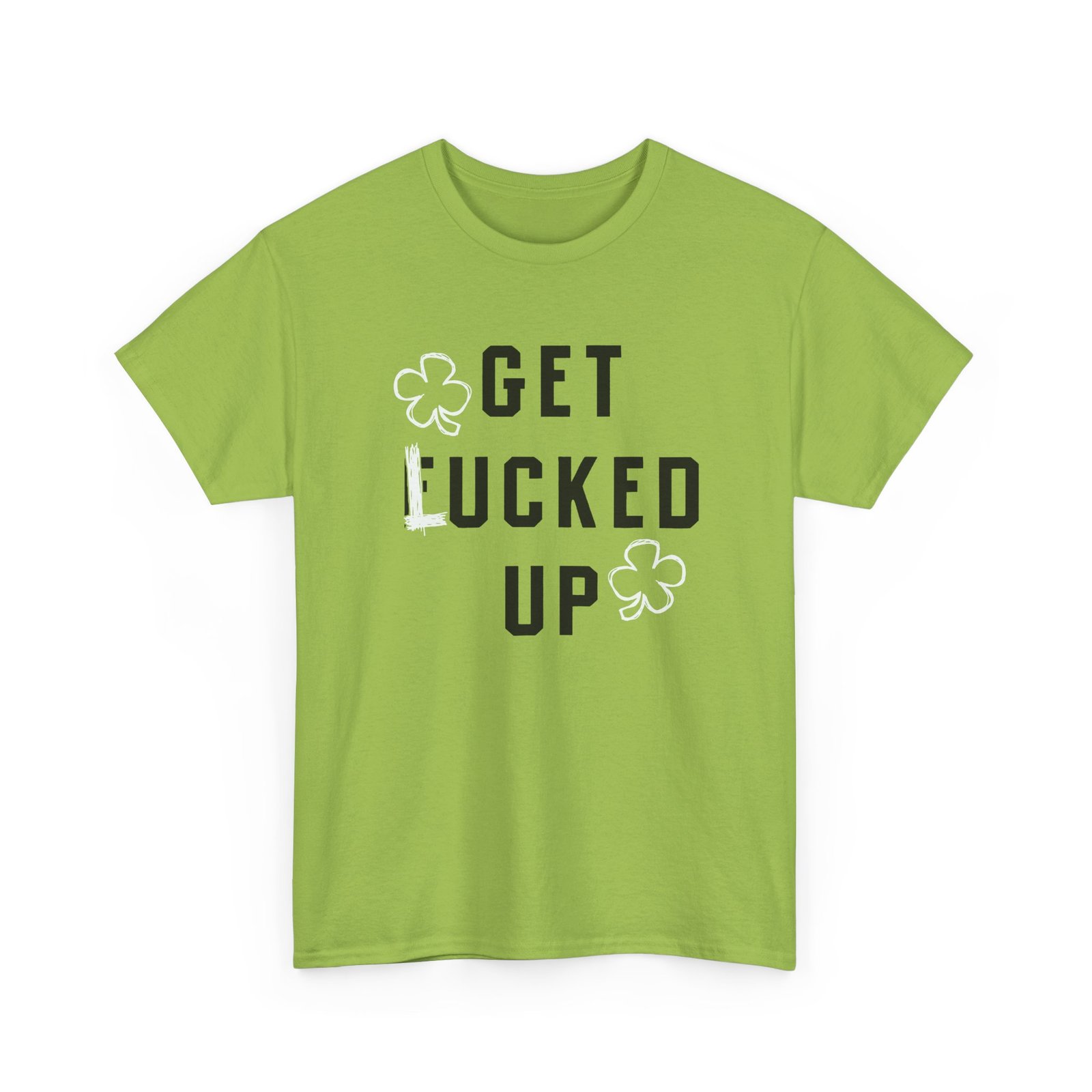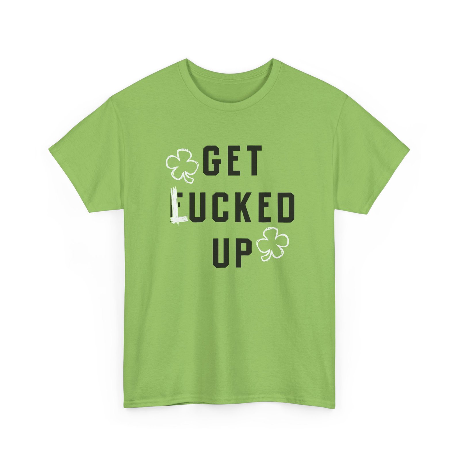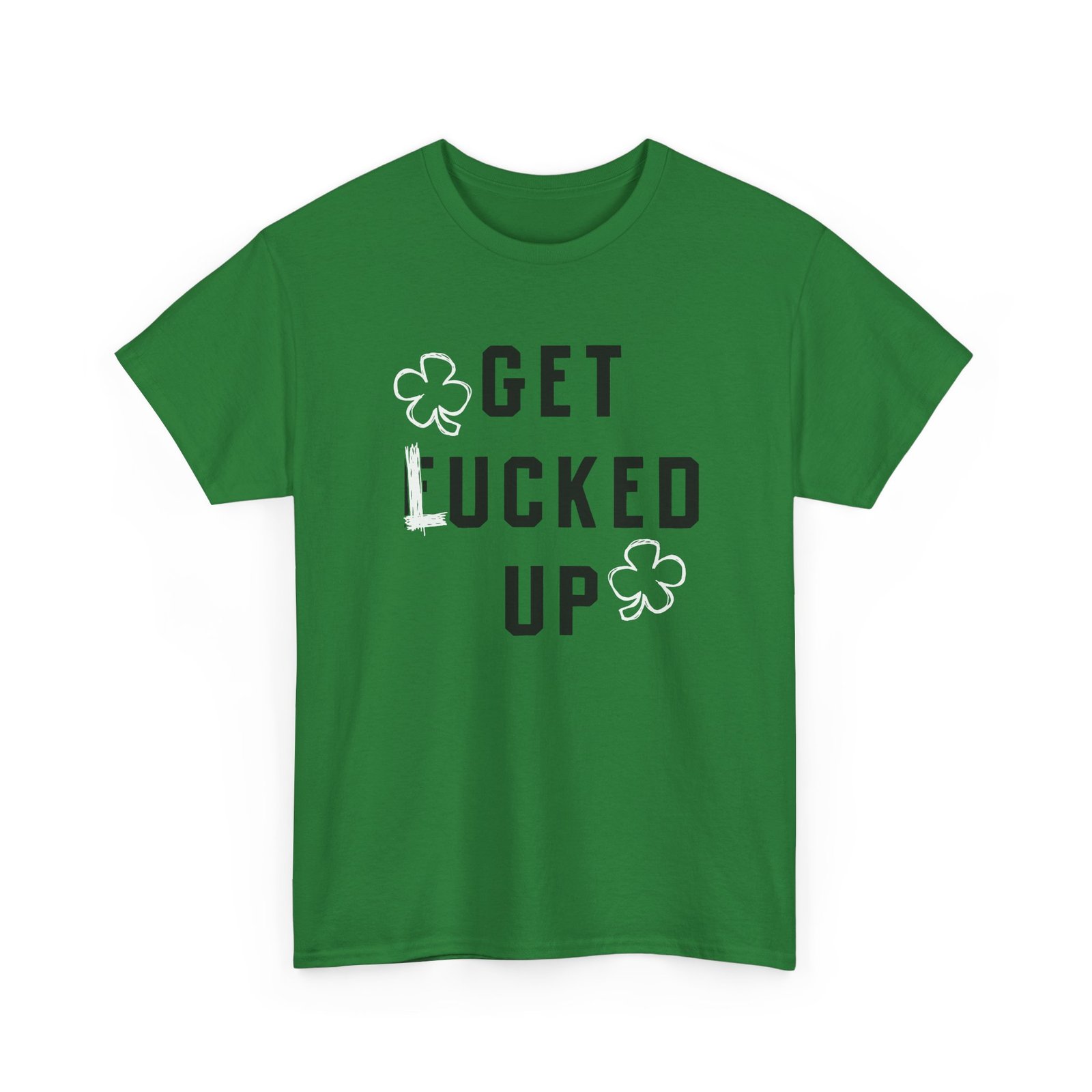 Bring the laughs (and the luck) with this unisex tee featuring two four-leaf clovers and the cheeky phrase Get Lucked Up—with the “L” hilariously scribbled over an “F.” Perfect for St. Patrick’s Day parties or anyone who enjoys a little mischievous Irish humor.